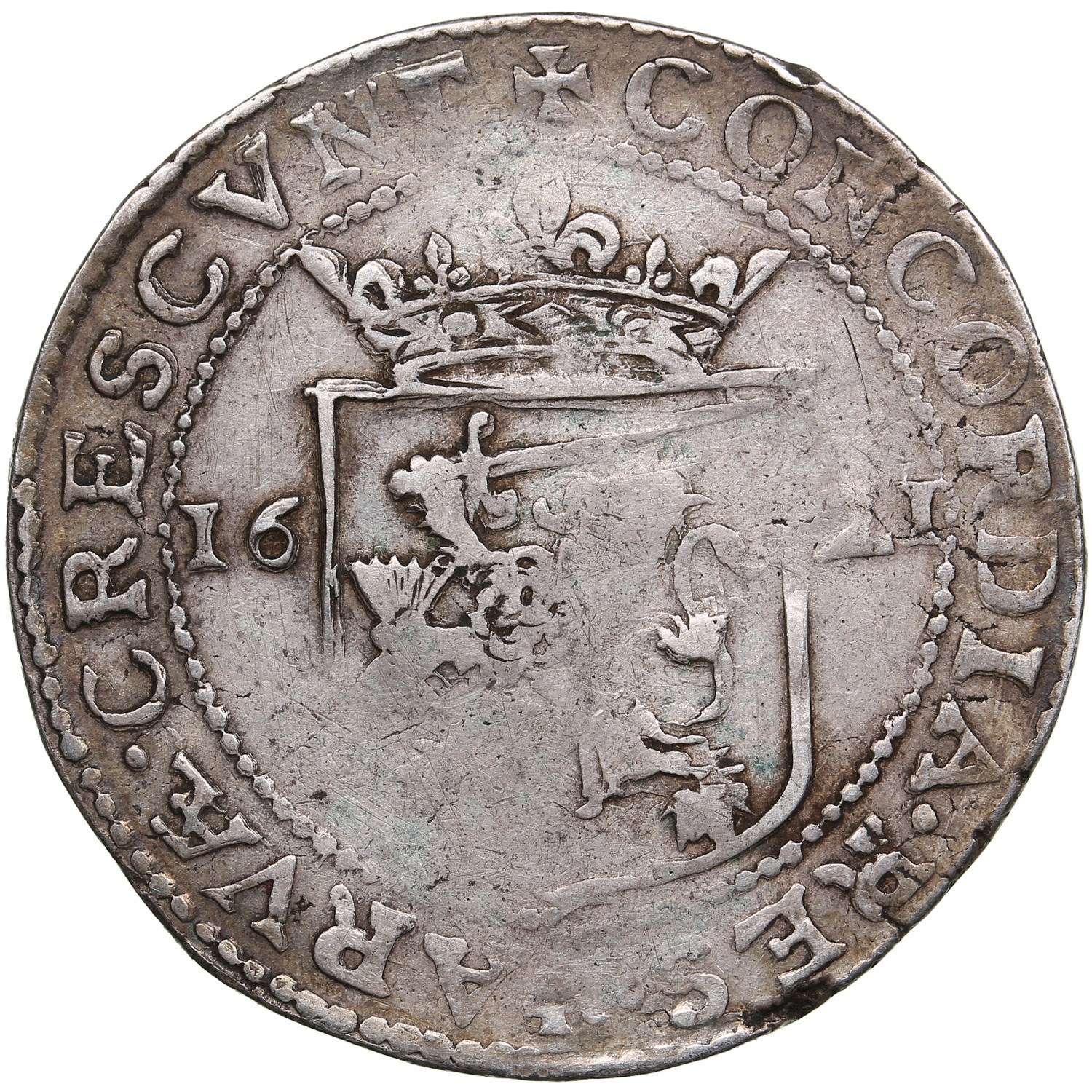 Rev.: Crowned Shield with arms of United Provinces, divides date 16-21; “+CONCORDIA·RES·PARVÆ·CRESCVNT”.