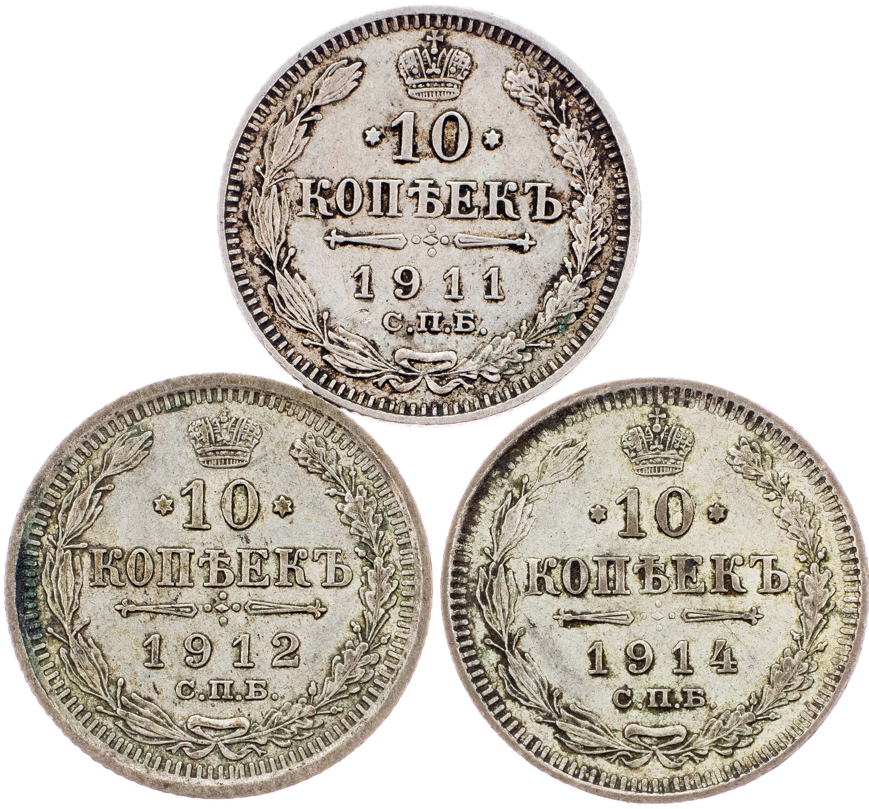 Nicholas II., 10 Kopecks 1911, 1912, 1914