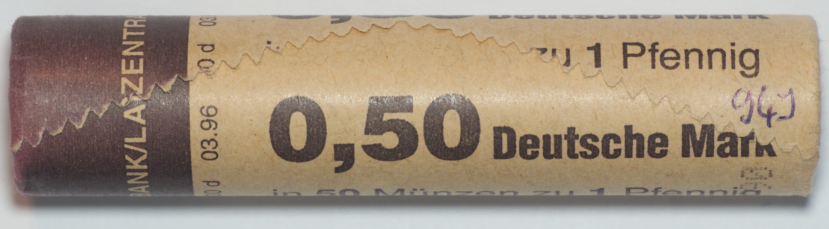 Niemcy, 1 Pfennig 1994r J - wartość 0,5 marki