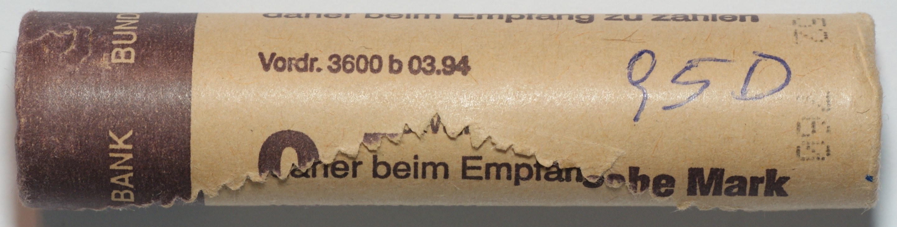 Niemcy, 1 Pfennig 1995r D - wartość 0,5 marki
