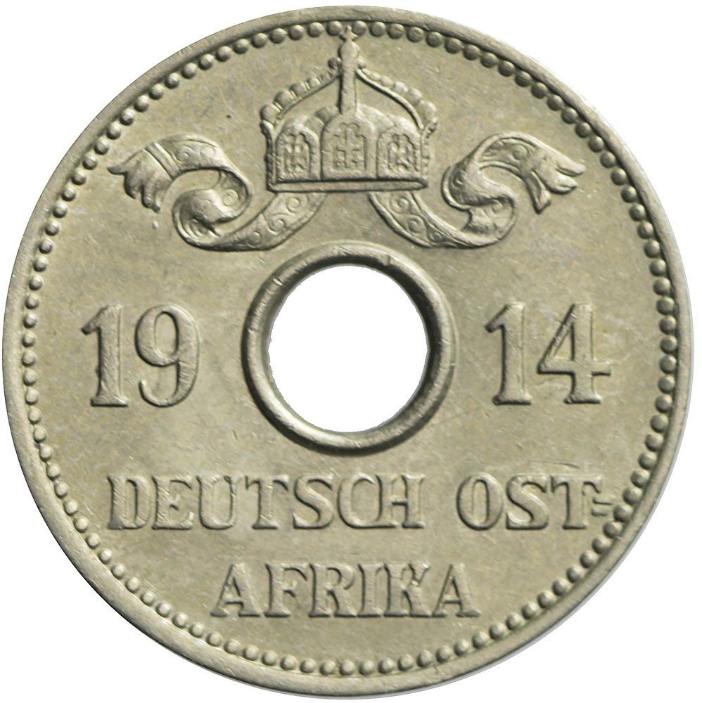 Niemiecka kolonia w środkowo-wschodniej Afryce obejmująca Tanganikę, Rwandę i Burundi. Aktualnie większość tego obszaru należy do Tanzanii. Srebro próby 917. Waga katalogowa 11,66 g. Moneta ze starą patyną.