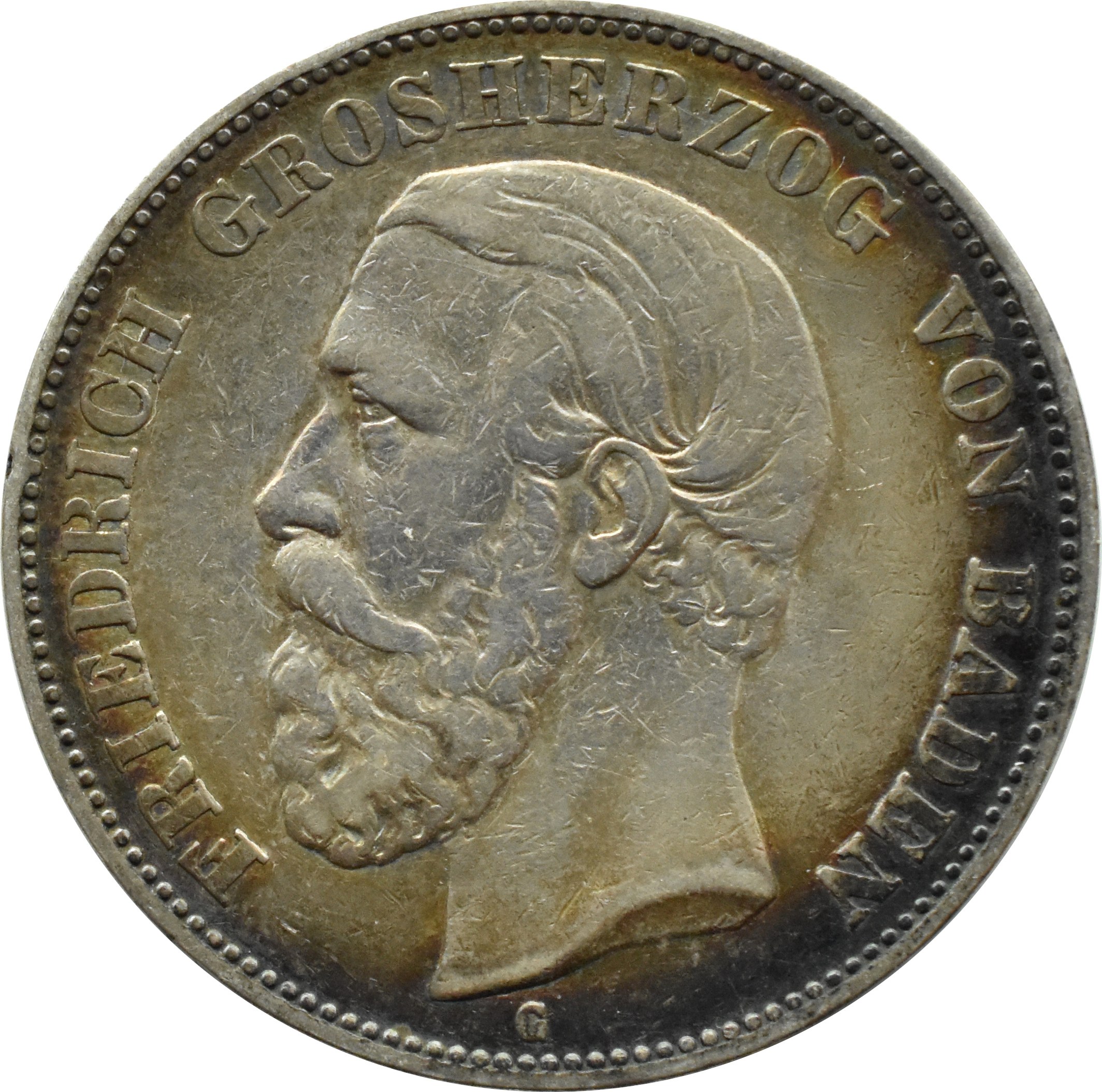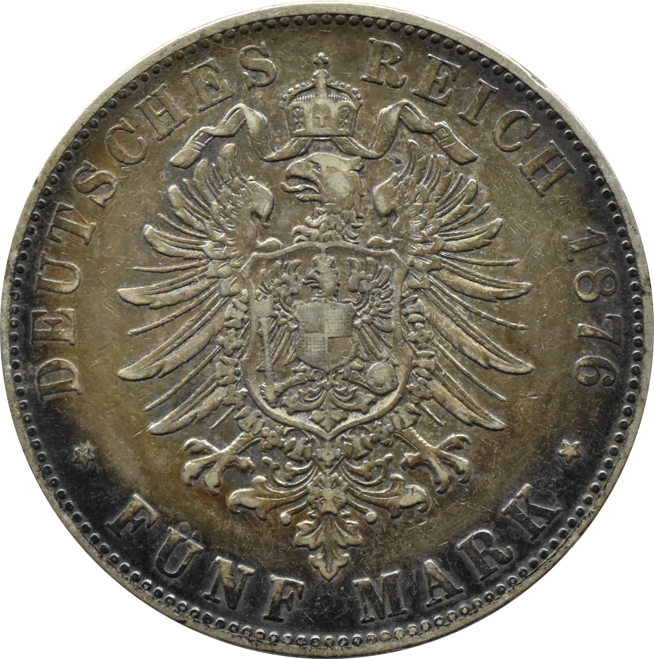 Niemcy, Badenia, Fryderyk I Badeński (1856-1907), 5 marek 1876 G, mennica Karlsruhe
