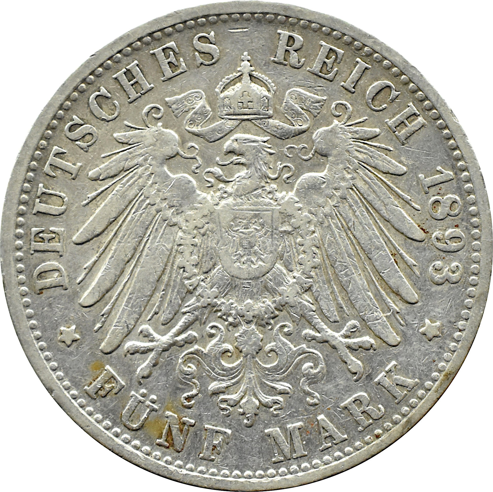 Niemcy, Badenia, Fryderyk I Badeński (1856-1907), 5 marek 1893 G, mennica Karlsruhe