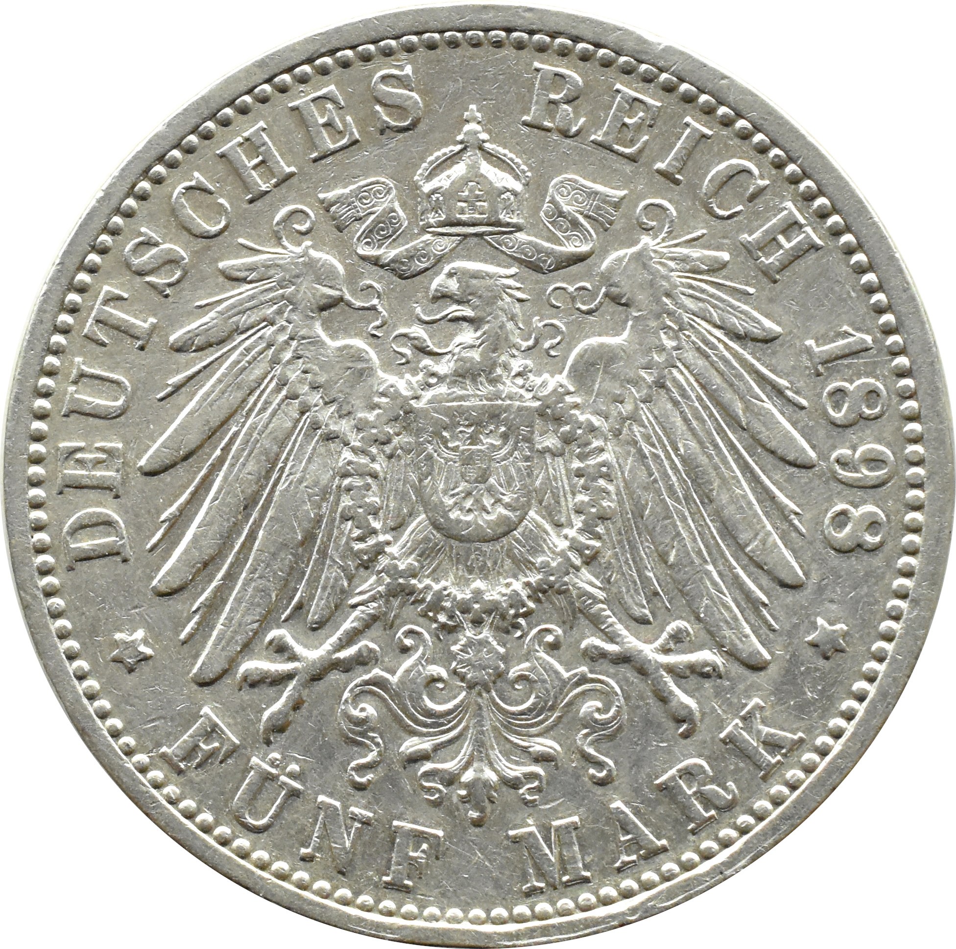 Niemcy, Badenia, Fryderyk I Badeński (1856-1907), 5 marek 1898 G, mennica Karlsruhe