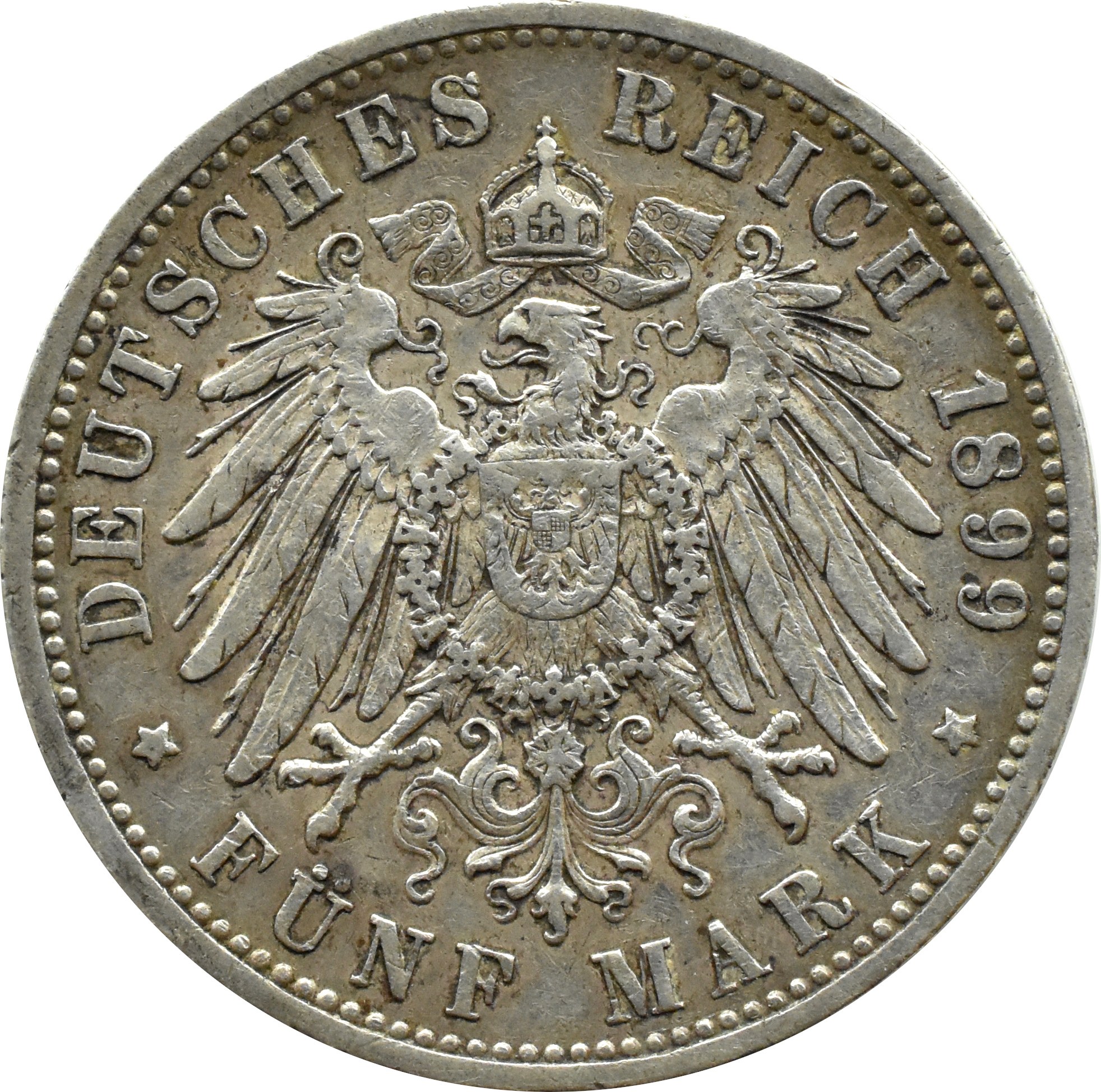 Niemcy, Badenia, Fryderyk I Badeński (1856-1907), 5 marek 1899 G, mennica Karlsruhe