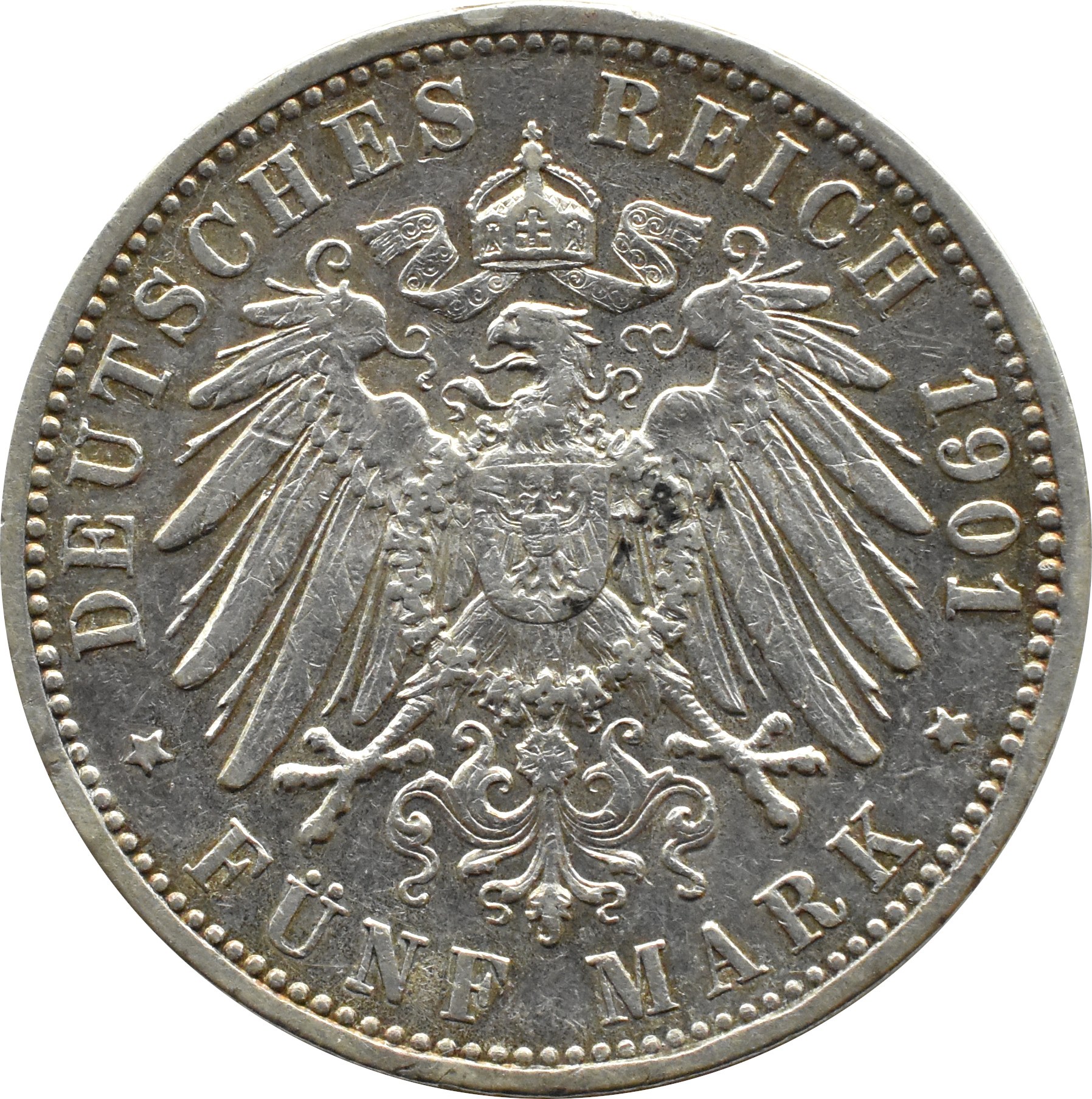 Niemcy, Badenia, Fryderyk I Badeński (1856-1907), 5 marek 1901 G, mennica Karlsruhe