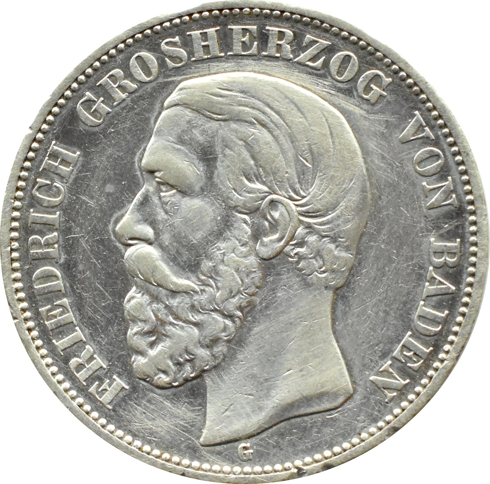 przeczyszczona moneta, ostatni rocznik tego portretu Fryderyka na monetach Badenii