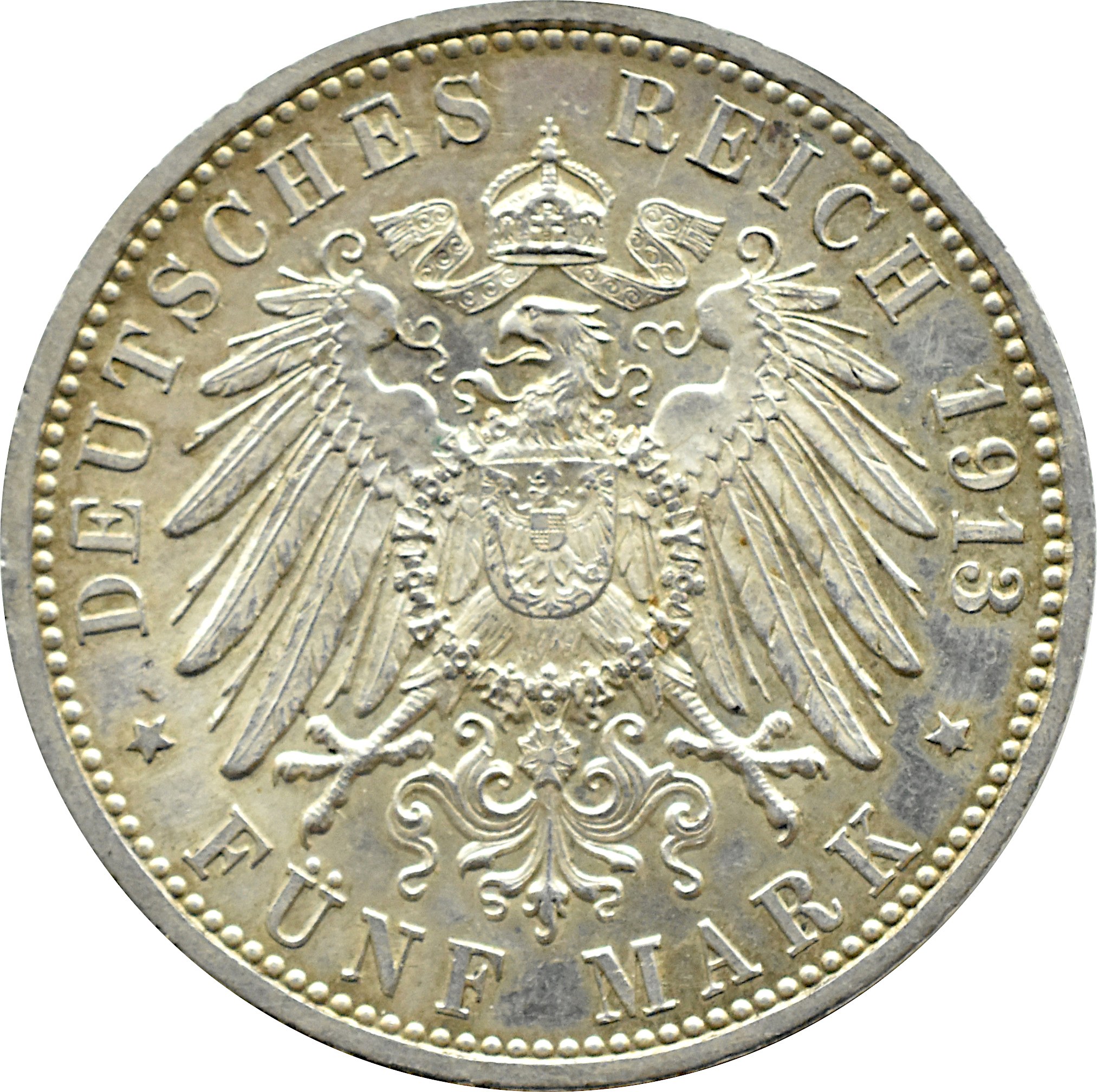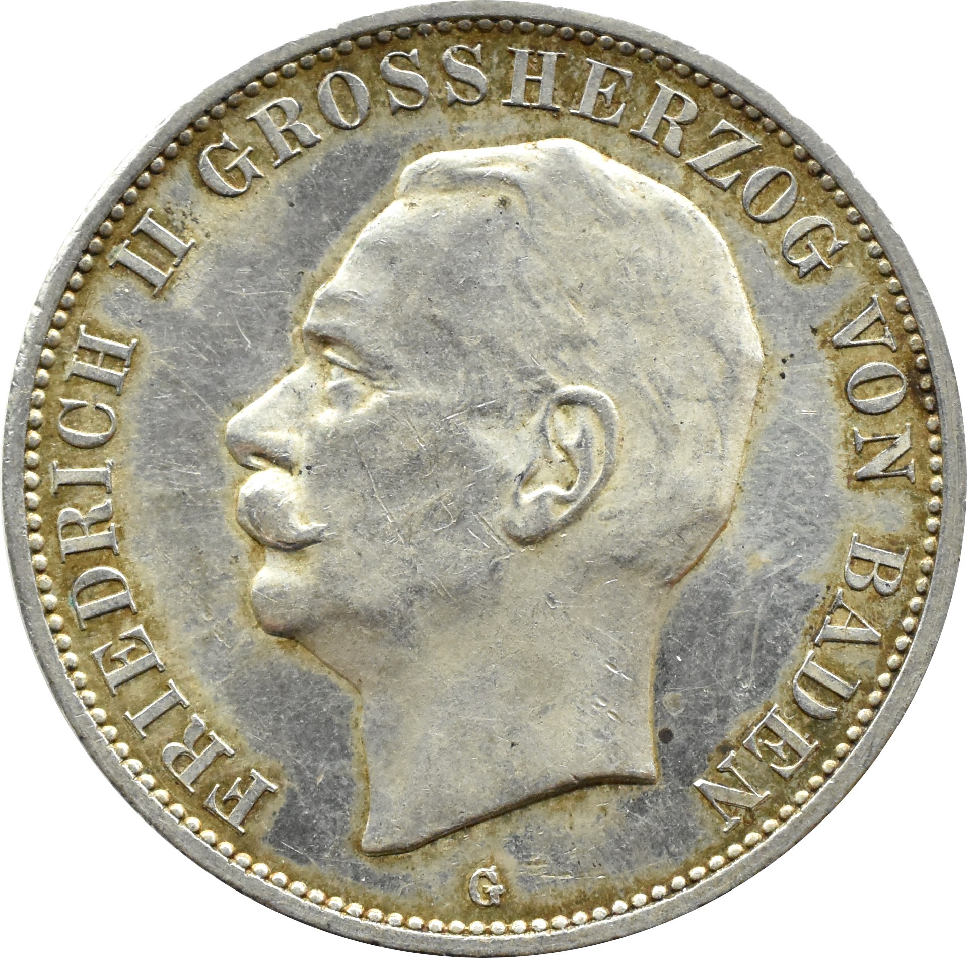 Niemcy, Badenia, Fryderyk II (1907-1918), 5 marek 1913 G, mennica Karlsruhe