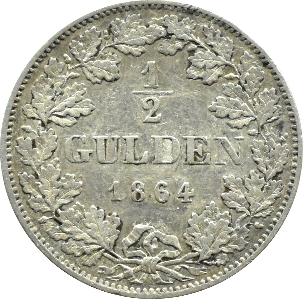Niemcy, Bawaria, Ludwik I, 1/2 guldena 1864, mennica Monachium