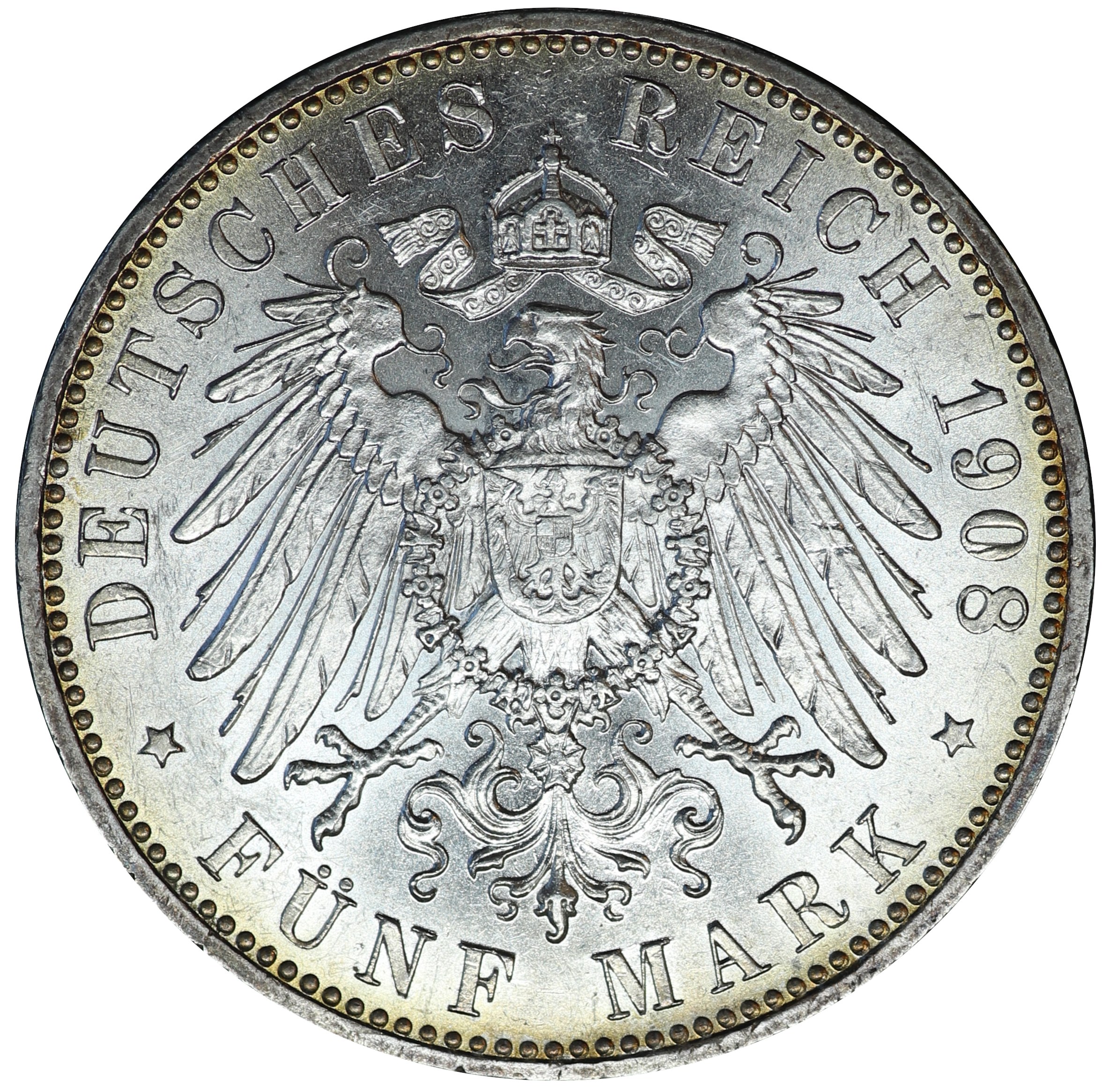 Niemcy, Bawaria, Otto, 5 marek 1908 D, Monachium