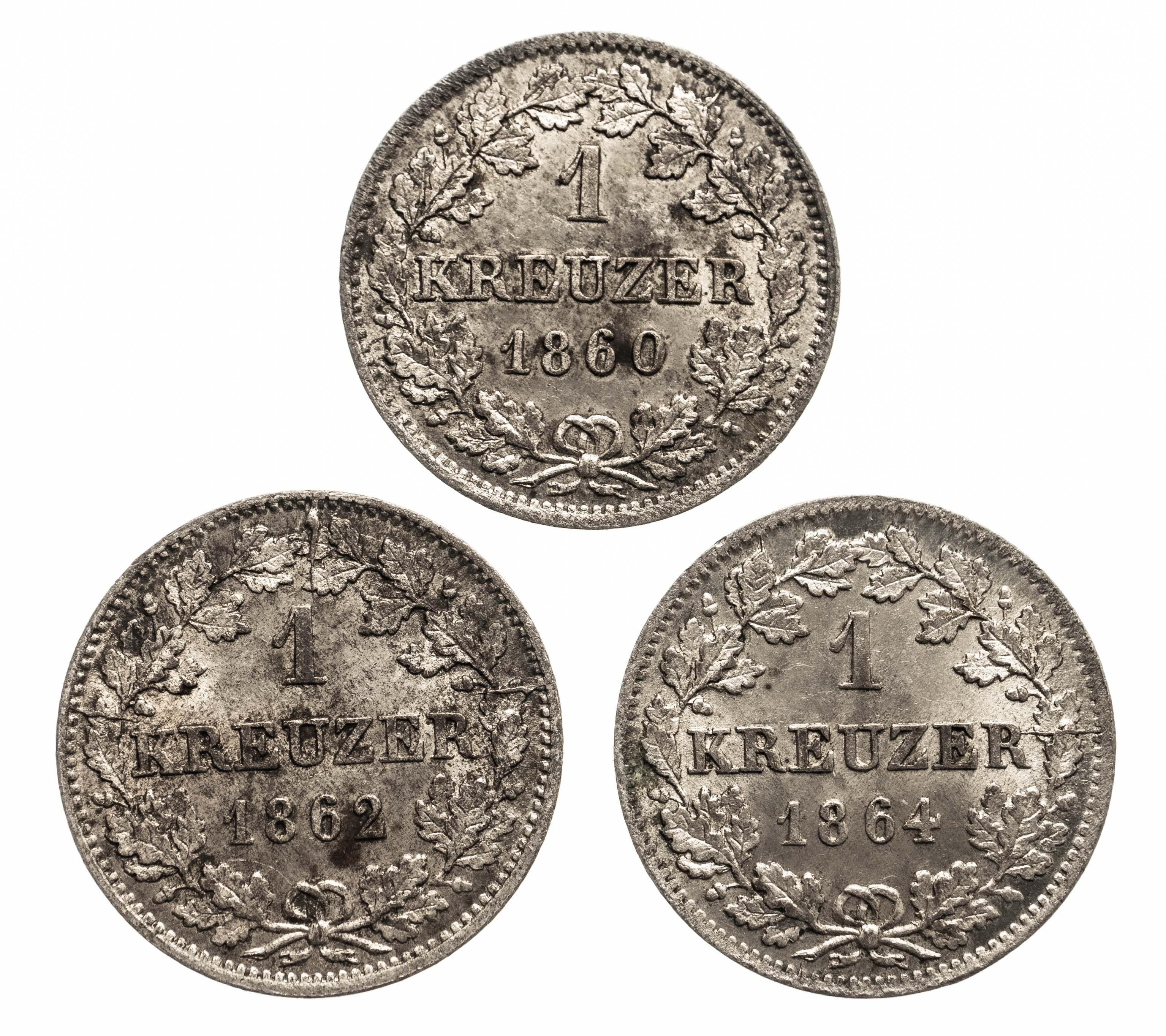 W zestawie występują monety jedno-krajcarowe z lat 1860, 1862 oraz 1864.