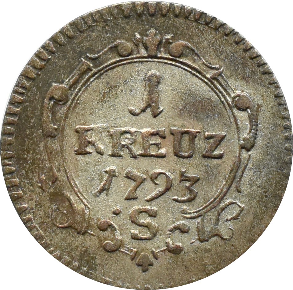 Niemcy, Brandenburgia-Ansbach-Bayreuth, margrabia Fryderyk Wilhelm II, kreuz (krajcar) 1793 S
