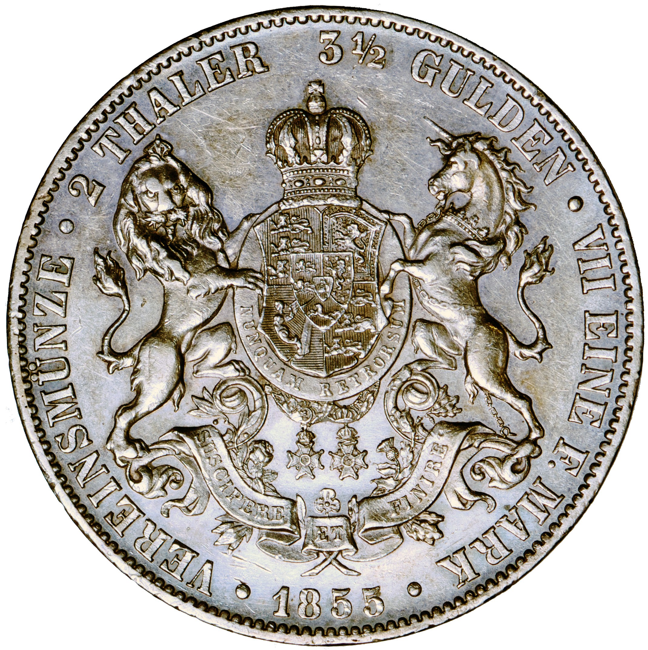 Niemcy, Hanower, Jerzy V, dwutalar, 1855, men. Hanower.