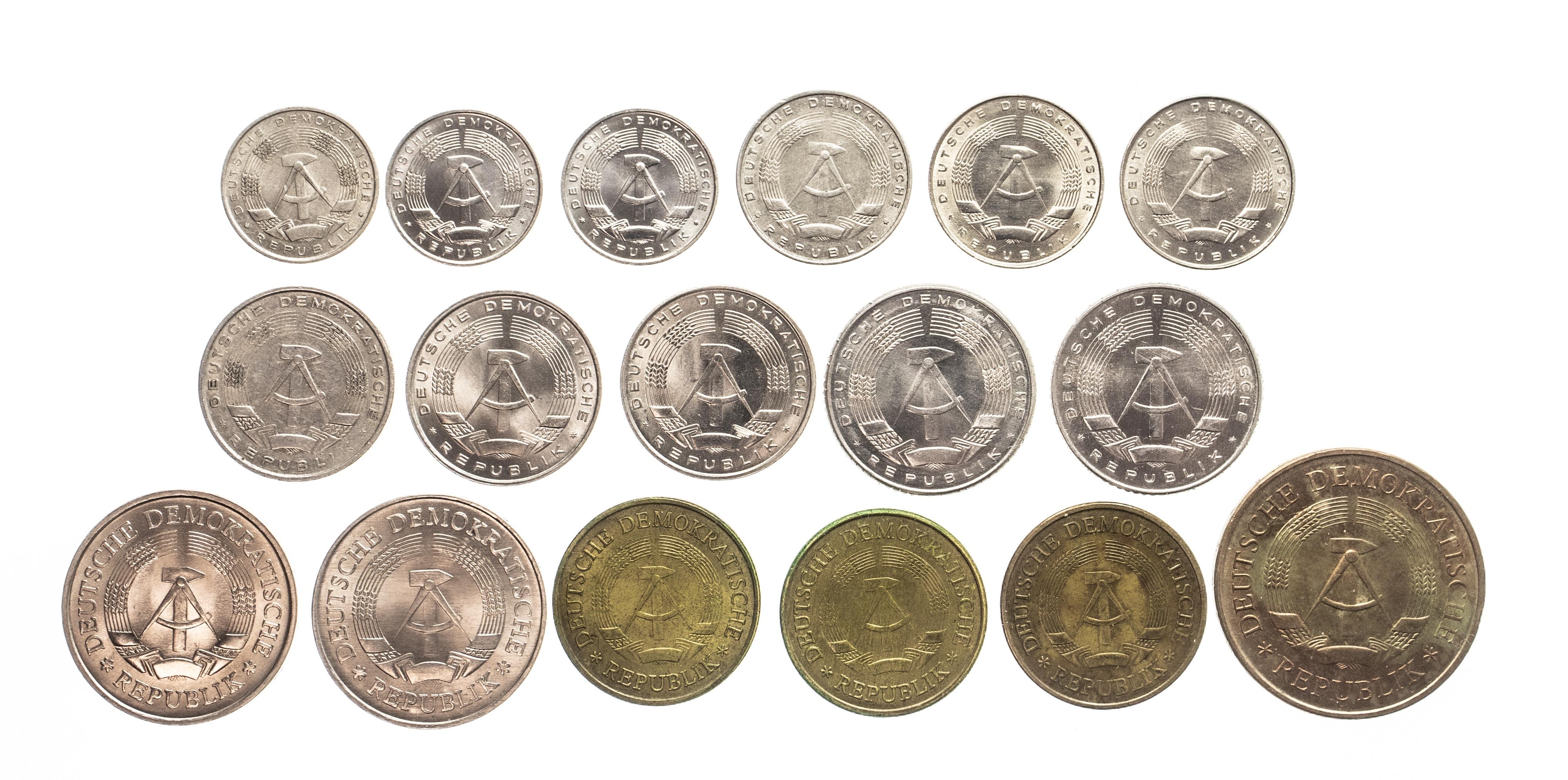 Niemcy, NRD, zestaw 17 monet obiegowych.