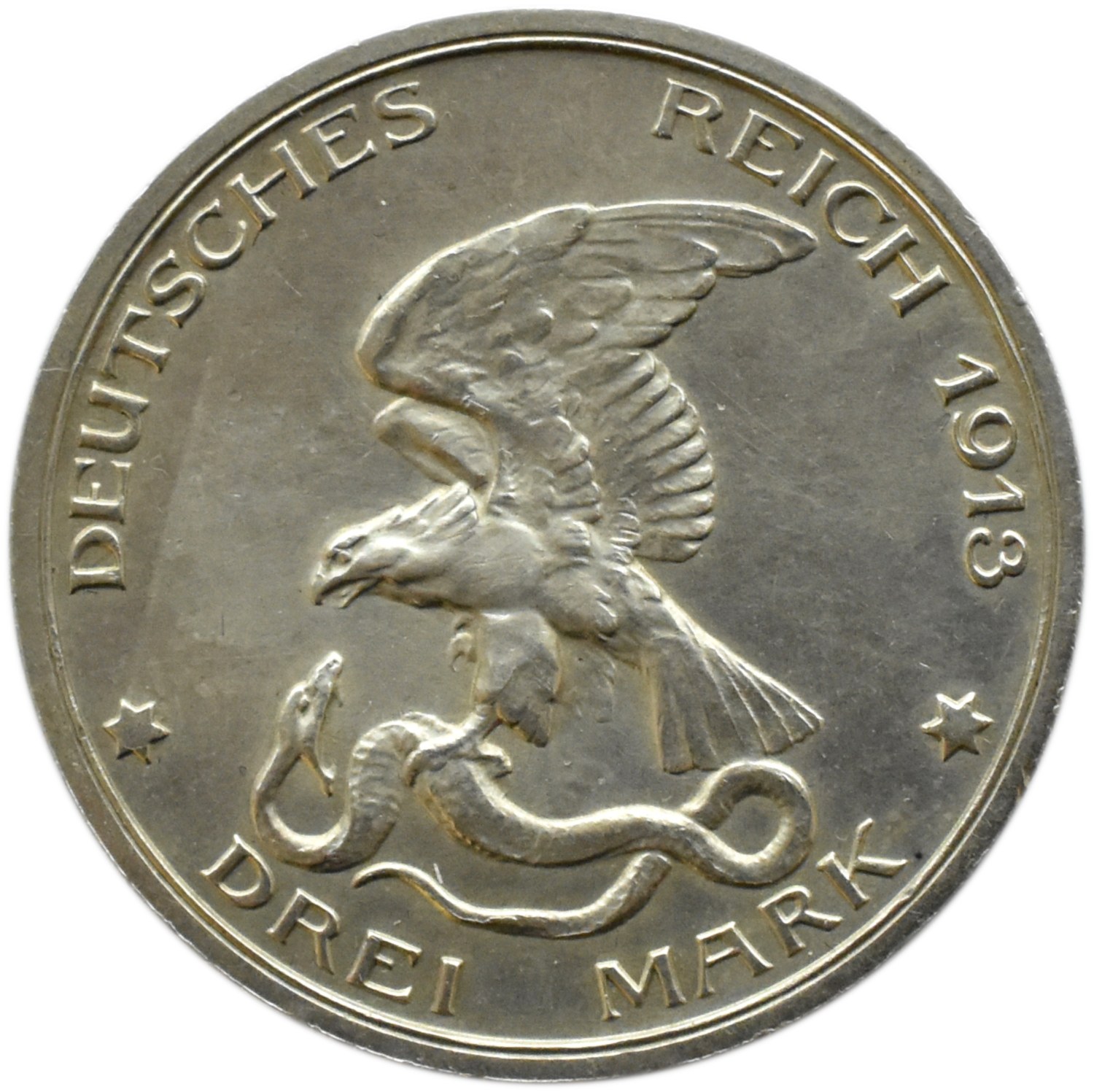 Niemcy, Prusy, Wilhelm II, 3 marki 1913 A, mennica Berlin