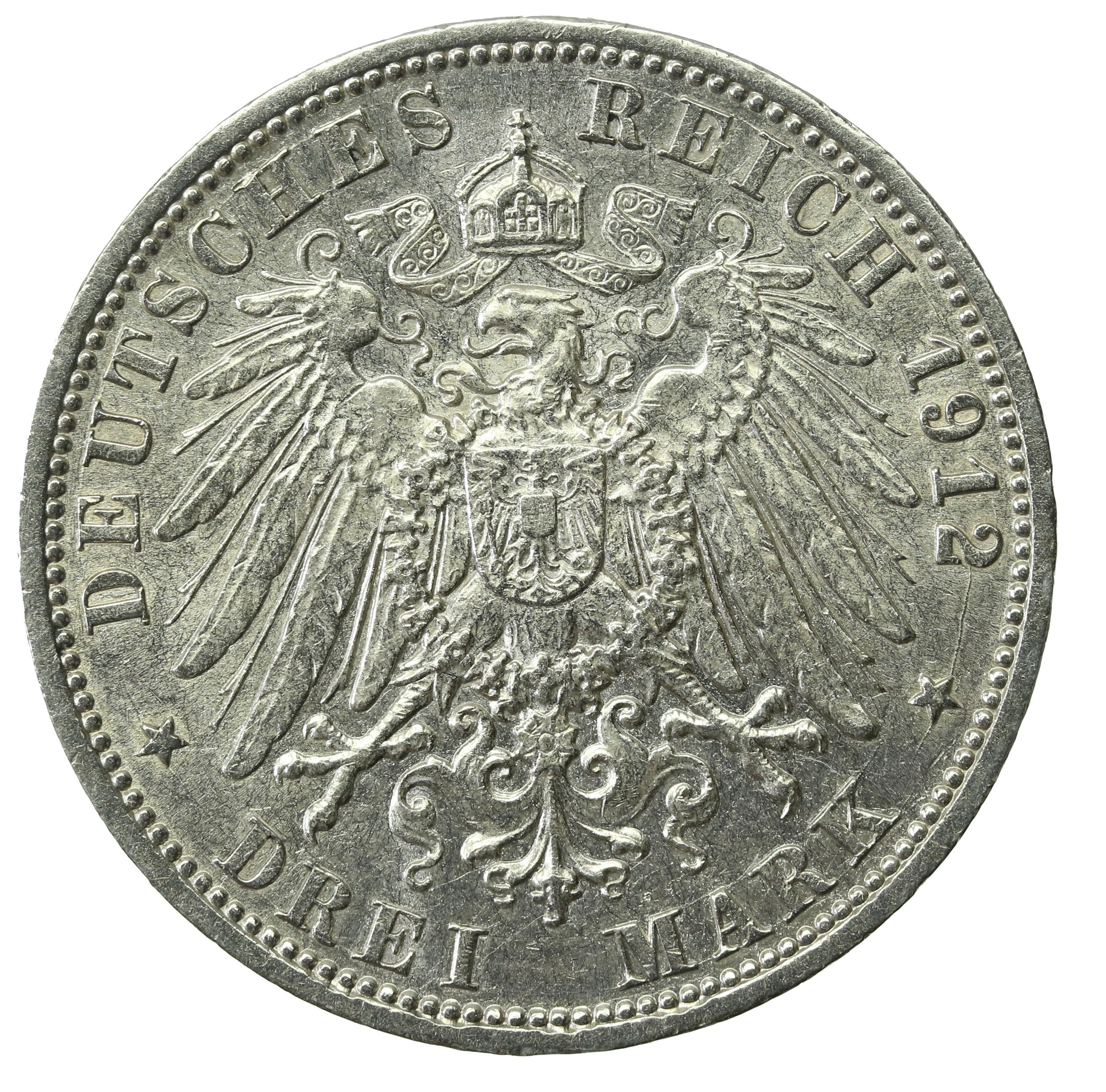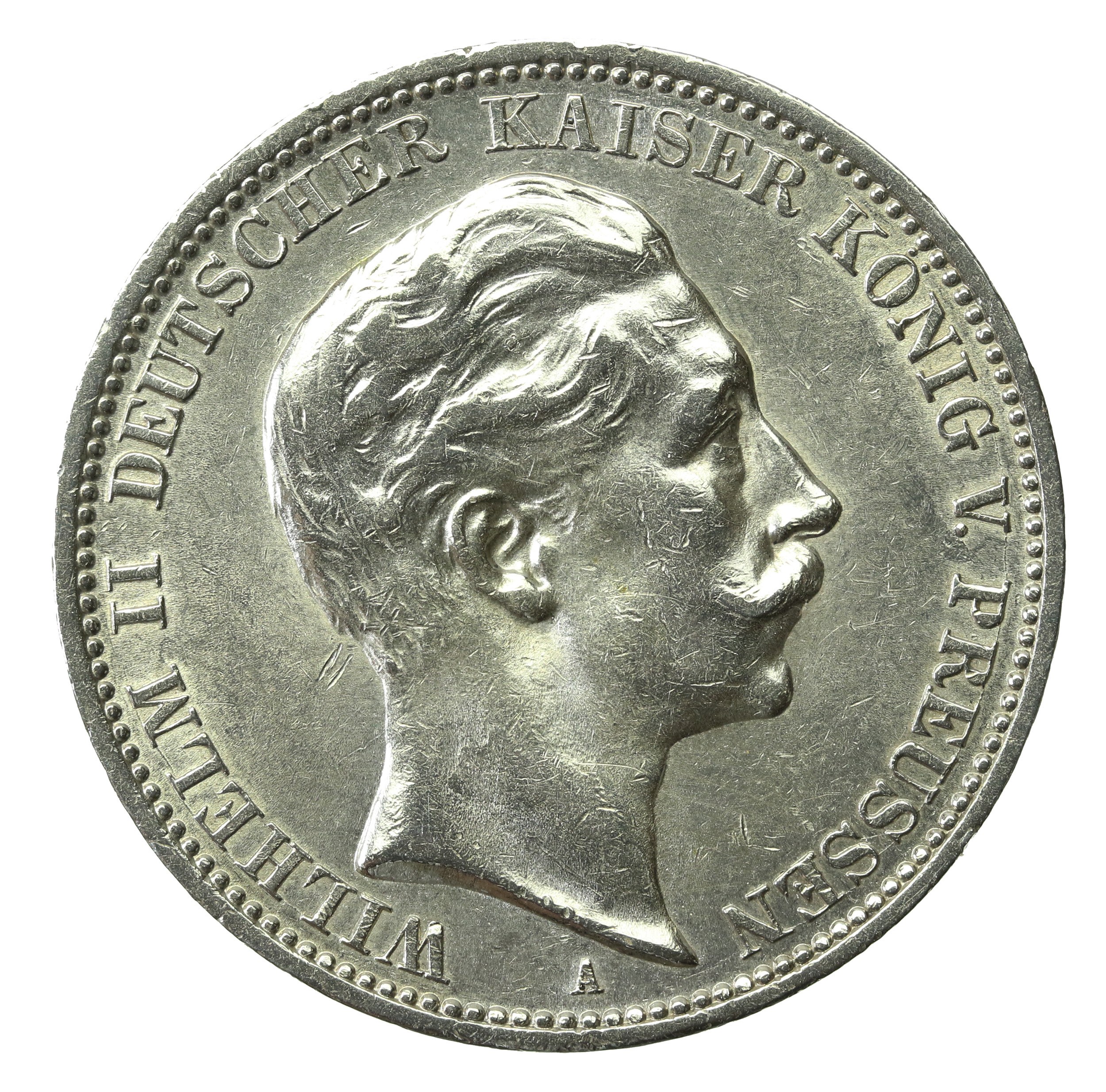 Niemcy, Prusy, Wilhelm II, 3 marki 1912 A, Berlin. Srebro 0.900. Waga katalogowa 16.67 g. Stan 2. Literatura: Jaeger 103