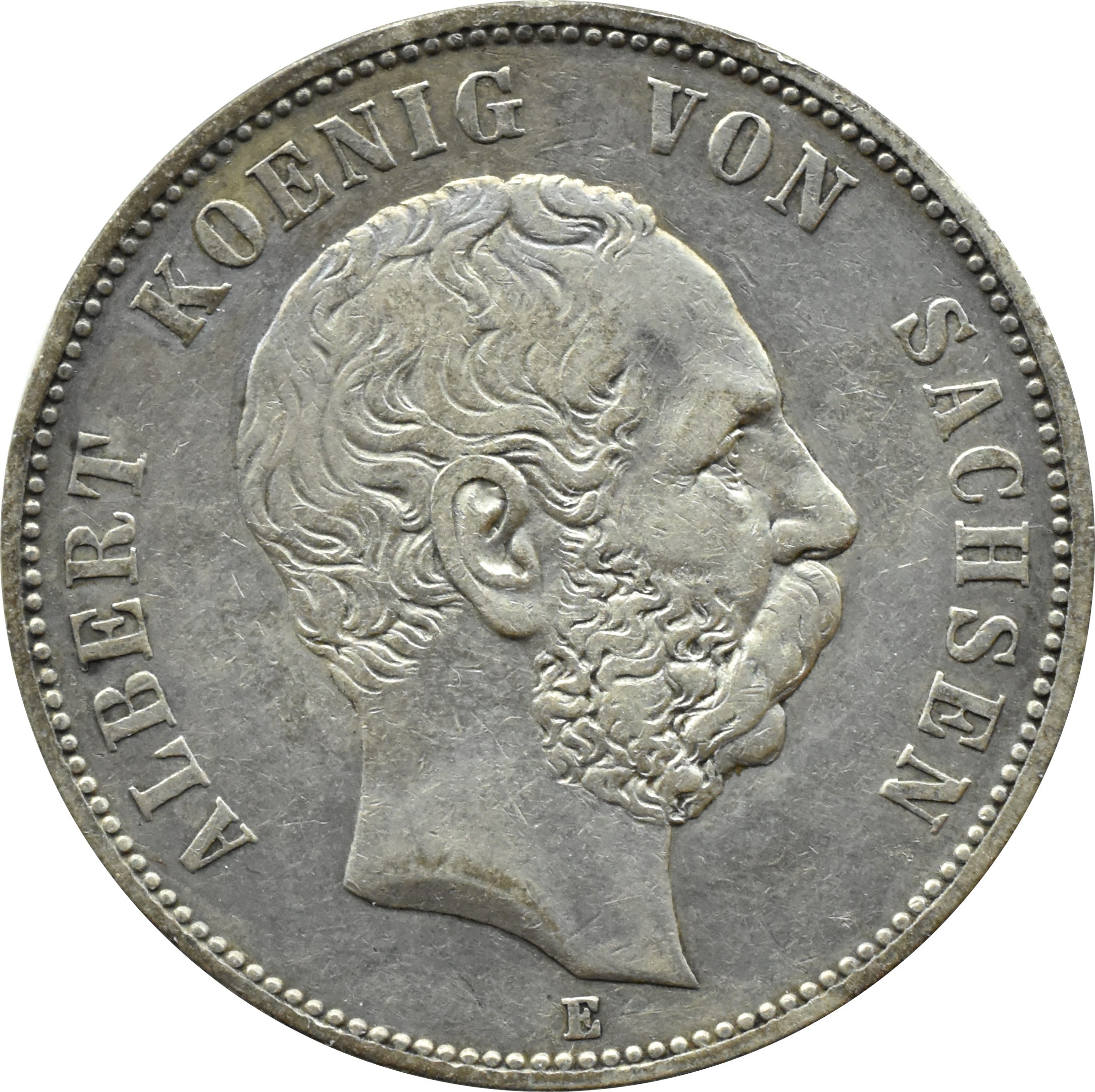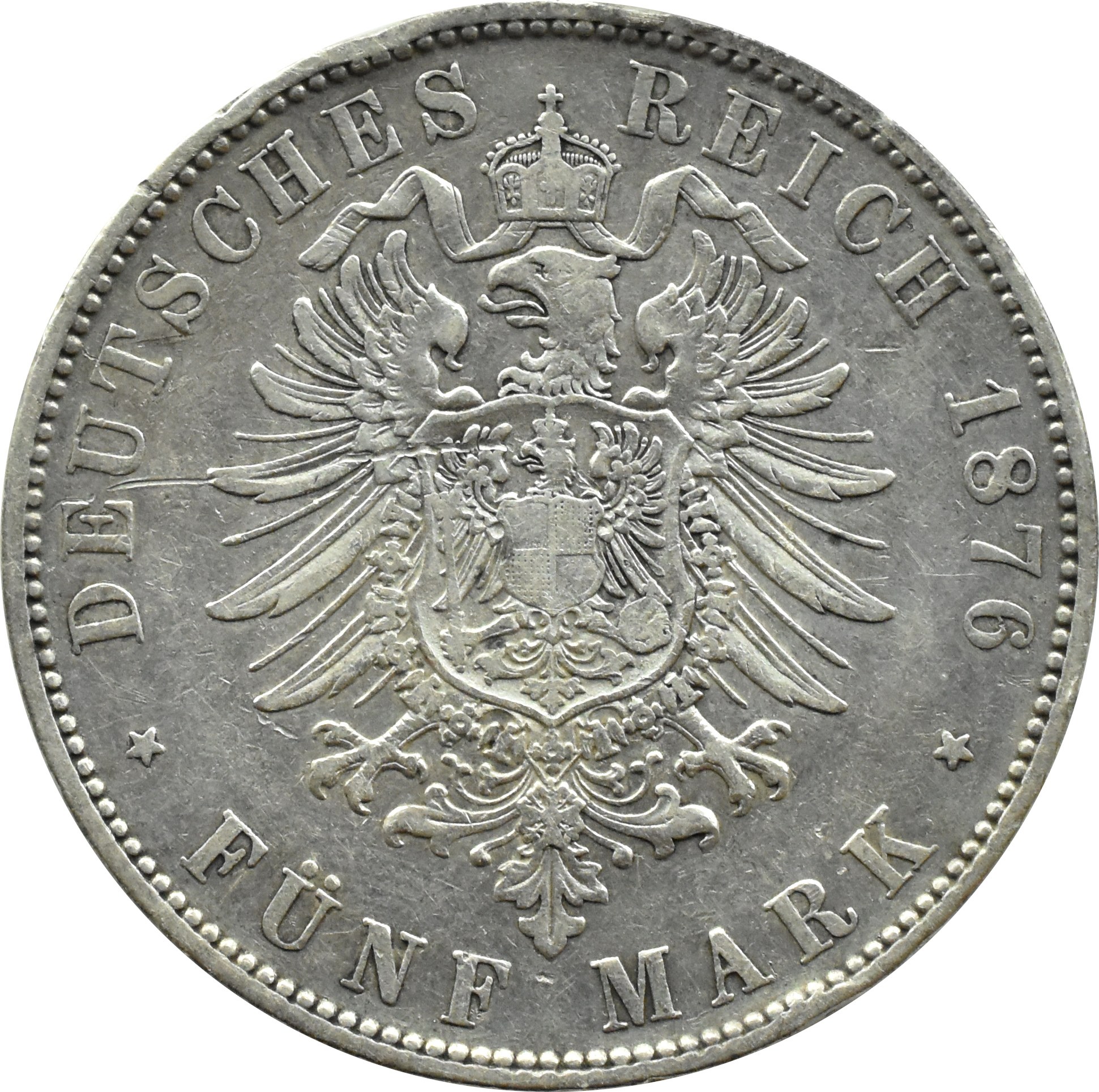 Niemcy, Saksonia, Albert (1873-1902), 5 marek 1876 E, mennica Muldenhütten