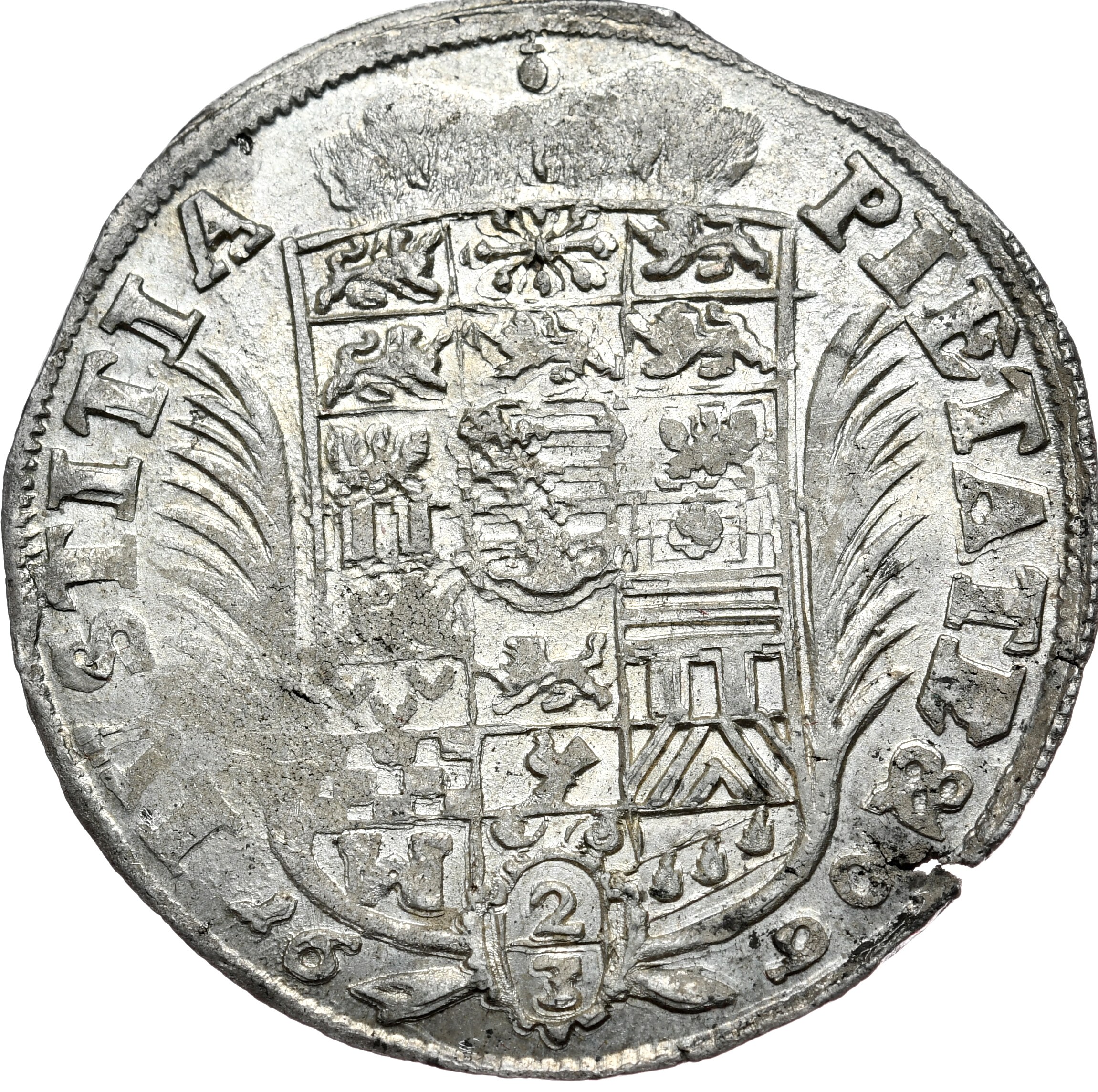 Niedobite, ale z niespotykanym obustronnym lustrem 2/3 talara księcia Jana Jerzego II. Niewielkie wady blachy.