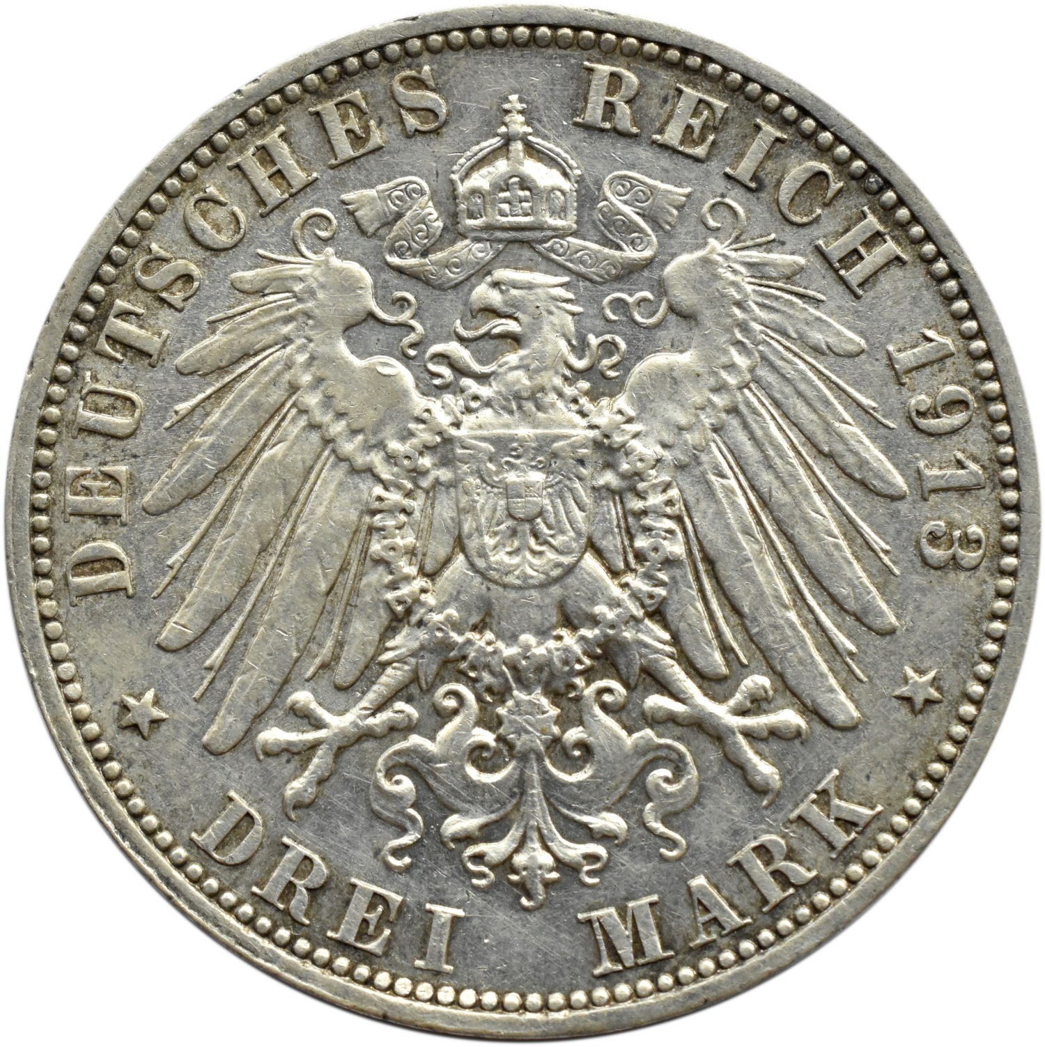 Niemcy, Saksonia, Fryderyk August, 3 marki 1913 E, mennica Muldenhütten
