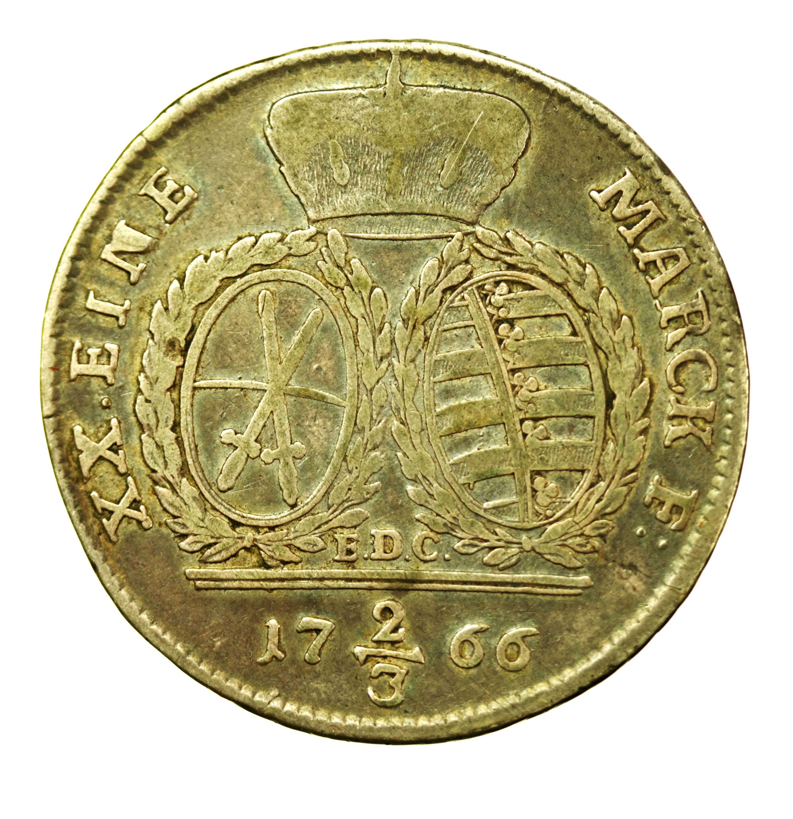 Niemcy, Saksonia, Fryderyk August III, 2/3 Talara 1766 EDC, Drezno. Stan zachowania 3-/3. Stara ładna patyna.