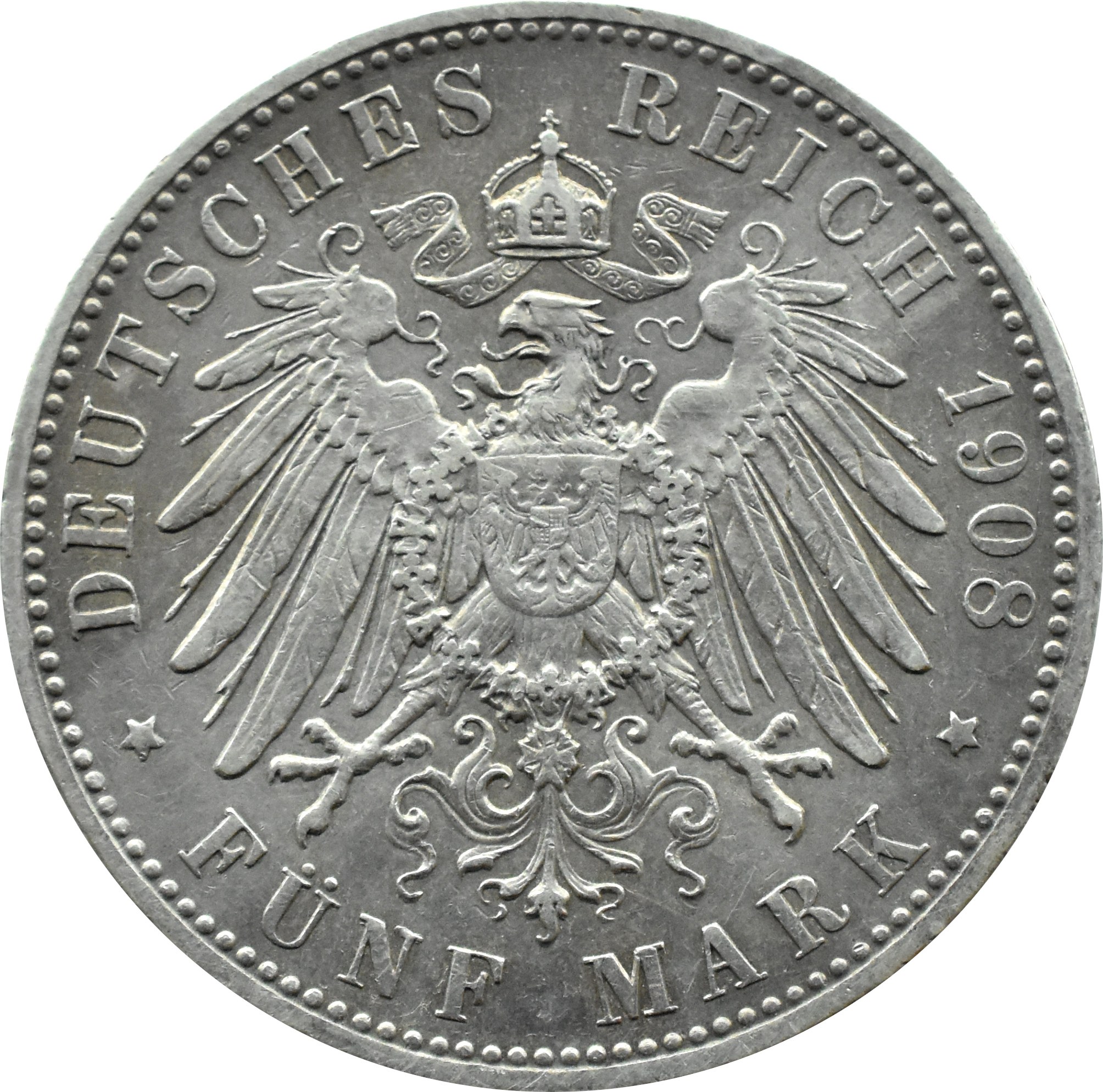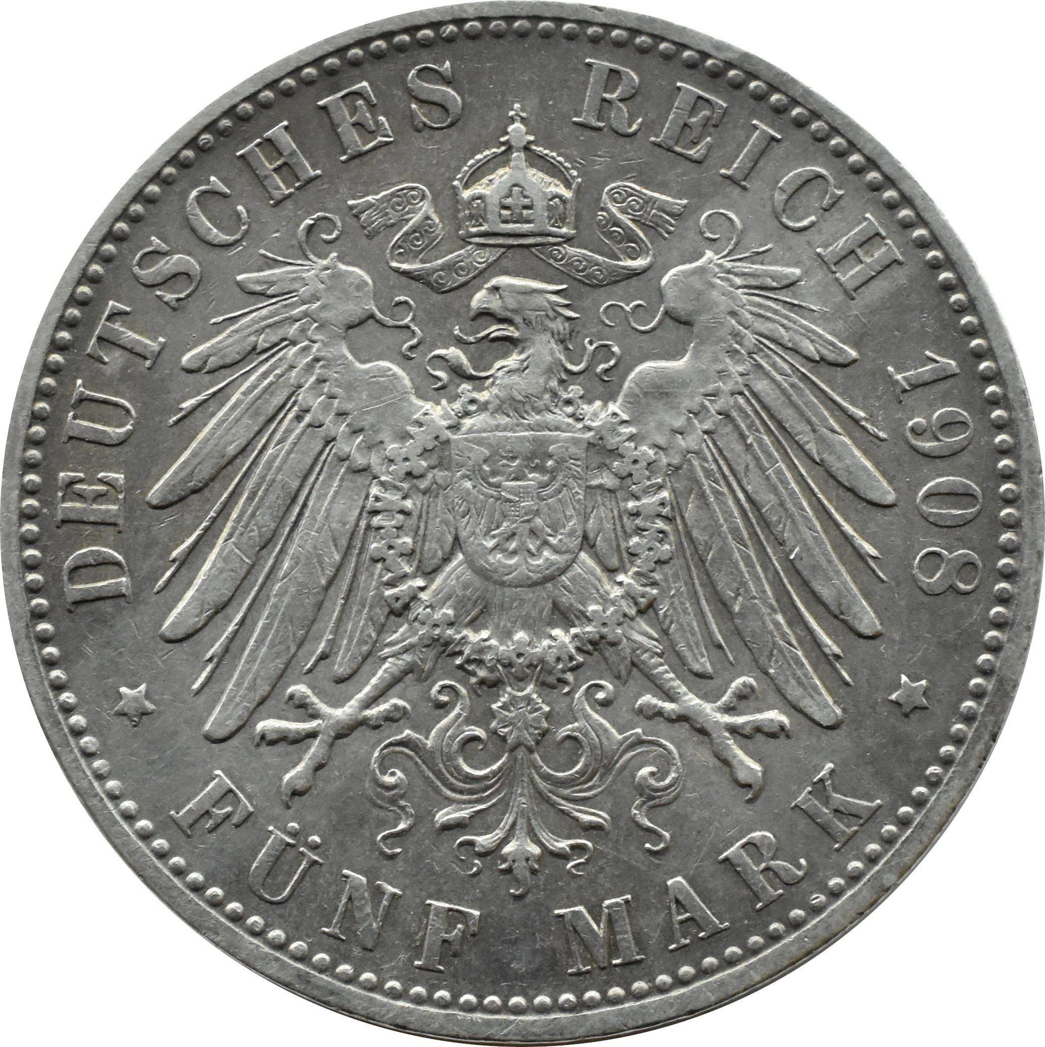 Niemcy, Saksonia-Meiningen, Georg II (1866-1914), 5 marek 1908 D, mennica Monachium