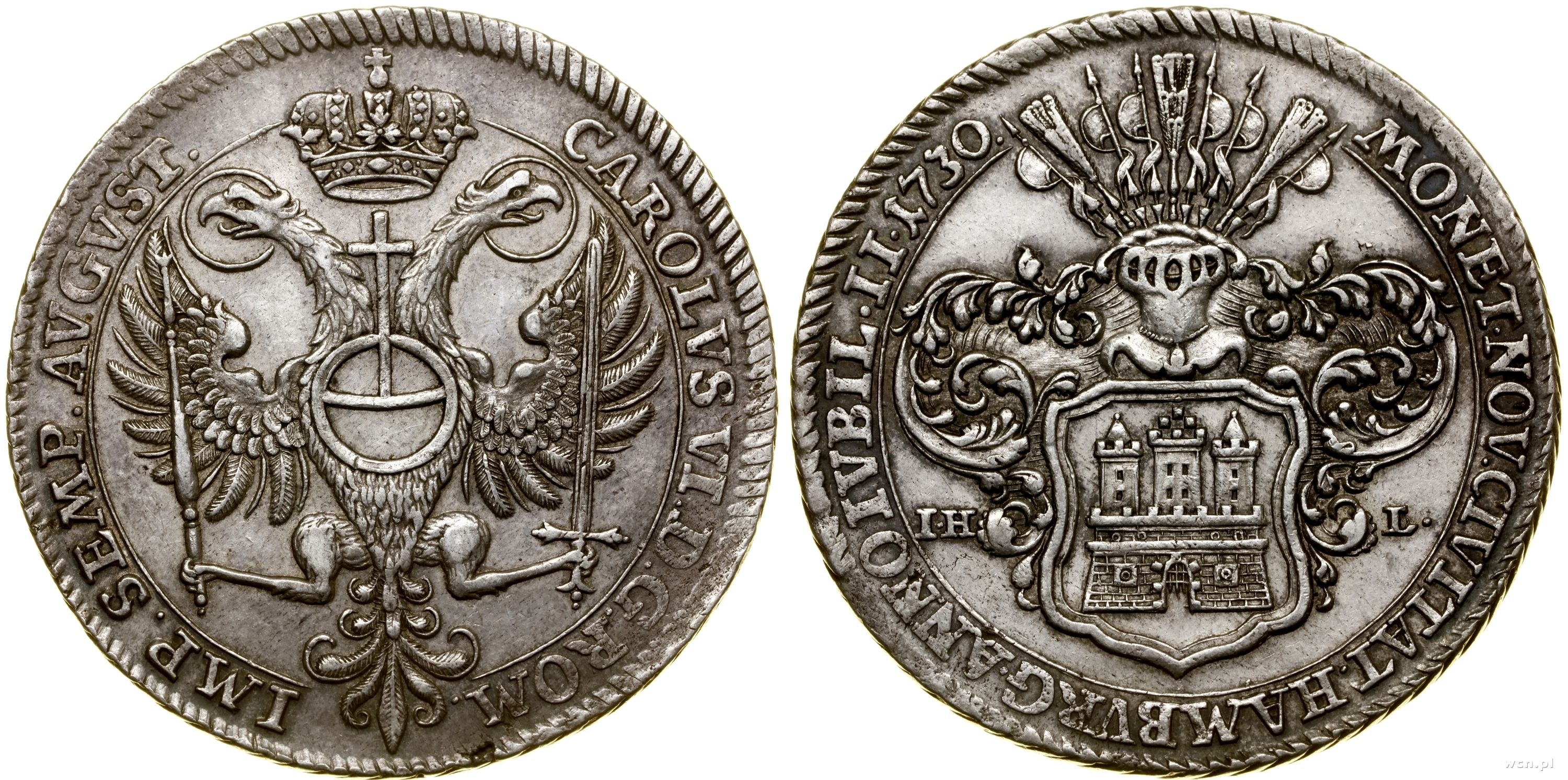 moneta wybita z okazji 200-lecia Konfesji Augsburskiej, Aw: Tarcza herbowa, legenda, Rw: Dwugłowy Orzeł, legenda