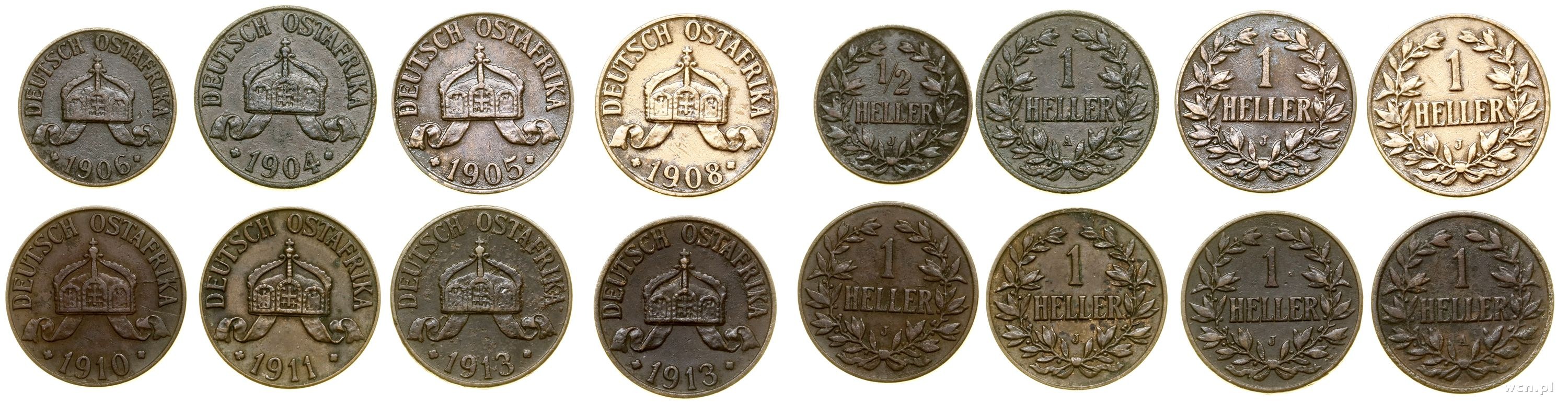 mennica w Berlinie: 1 halerz 1904 A, 1913 A, mennica w Hamburgu: 1 halerz 1905 J, 1908 J, 1910 J, 1911 J, 1913 J oraz 1/2 halerza 1906 J
