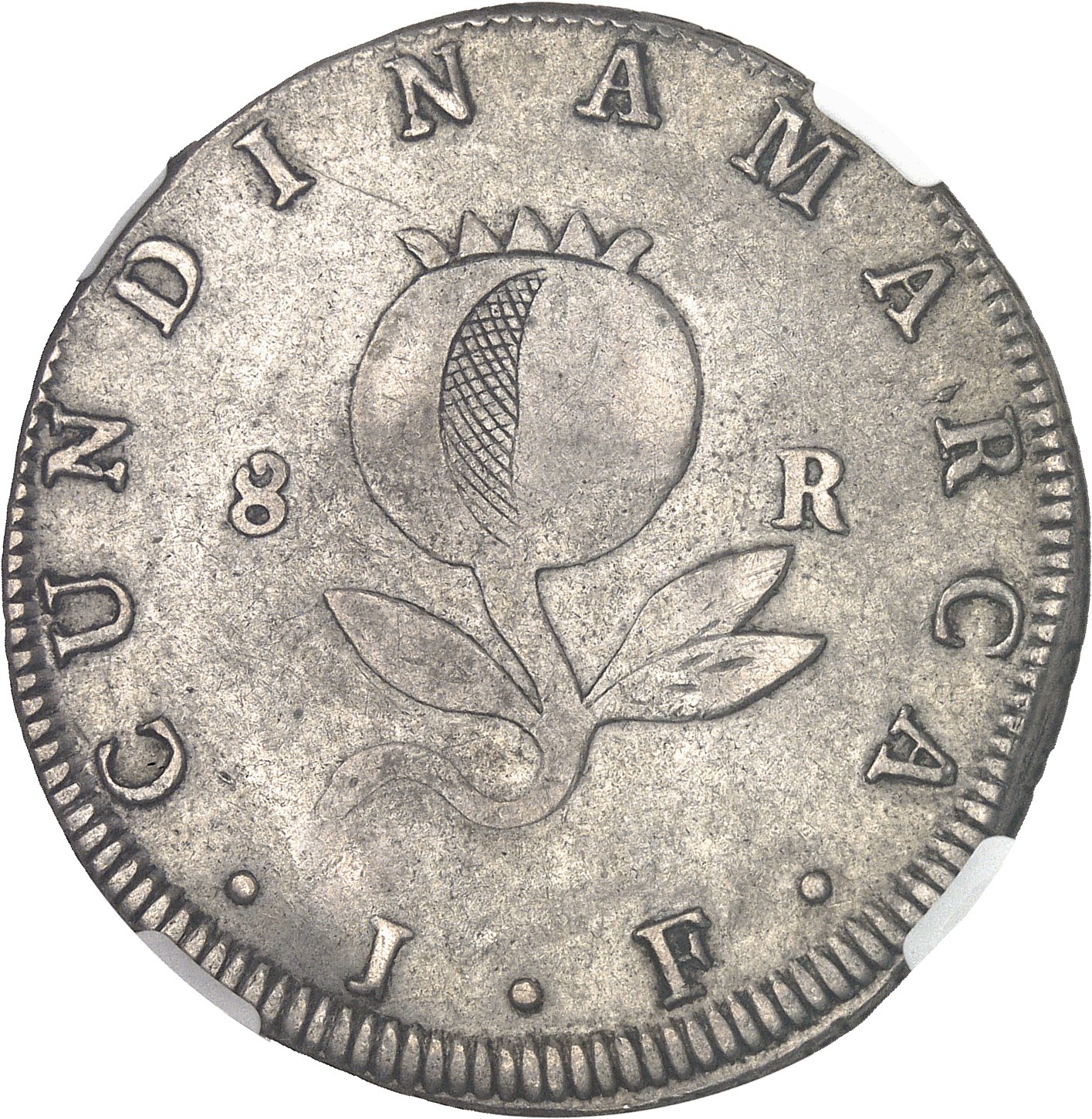 Rv. CUNDINAMARCA / (essayeur). Grenade au centre, accostée de 8 - R.