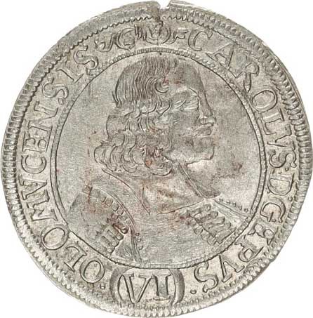 Olomouc, Karel II. Liechtenstein (1664-1695), VI kr. 1677 špice SV 347 B1/C1 var.: jiná arabeska na