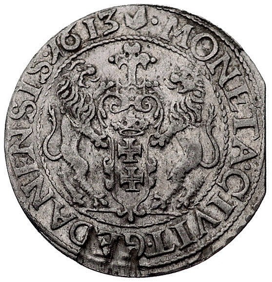 ort 1613, Gdańsk, odmiana z kropką za łapą niedźwiedzia...