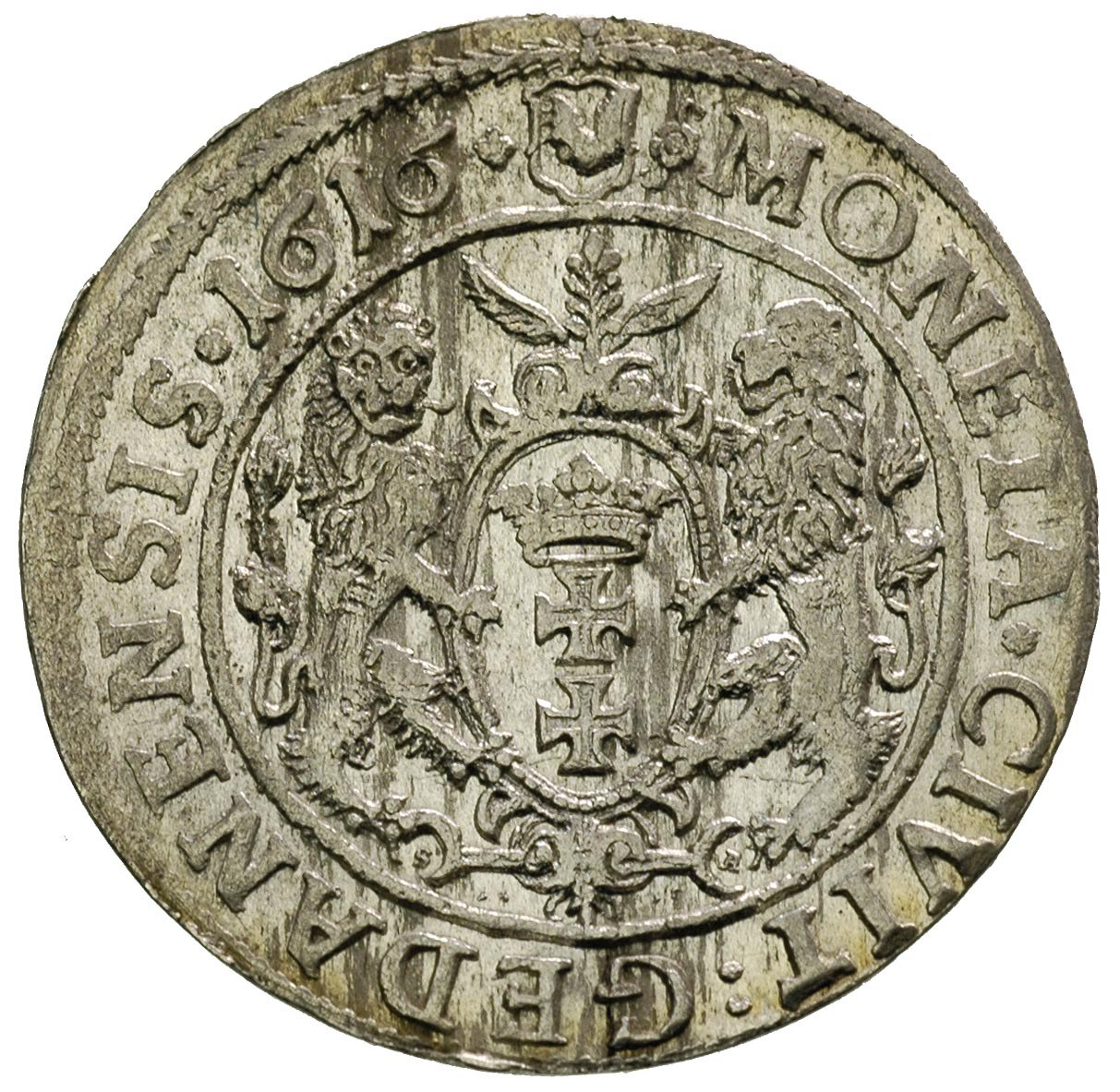Zygmunt III Waza 1587-1632, ort 1616, Gdańsk, PRVS : i mała rozetka na końcu napisu, który nie dochodzi do korony