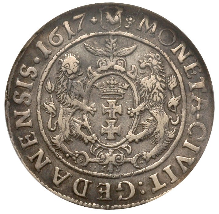 Zygmunt III Waza 1587-1632, ort 1617, Gdańsk, dwukropek i rozetka kończą napis na awersie, moneta w pudełku NGC z certyfikatem AU 50, patyna