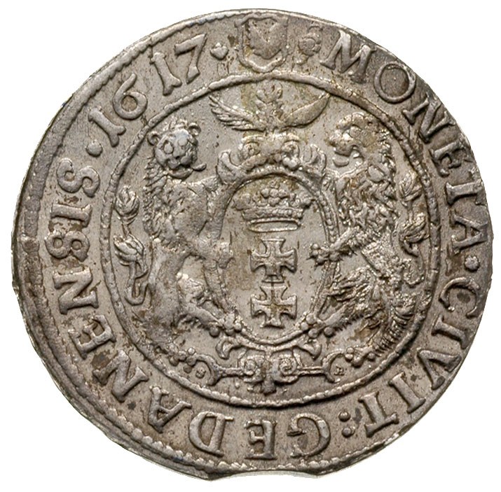 ort 1617, Gdańsk, maleńka rozetka kończy napis na awers...
