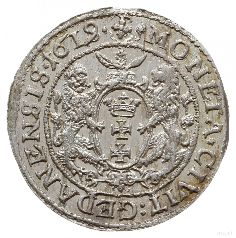 miasto Gdańsk, ort 1618/9, Gdańsk; data przebita na stemplu z 1618 na 1619; Kop. 7497 var; Shatalin GD19c - ale nie notuje takiej odmiany napisu; pięknie zachowany, rzadki w tym stanie