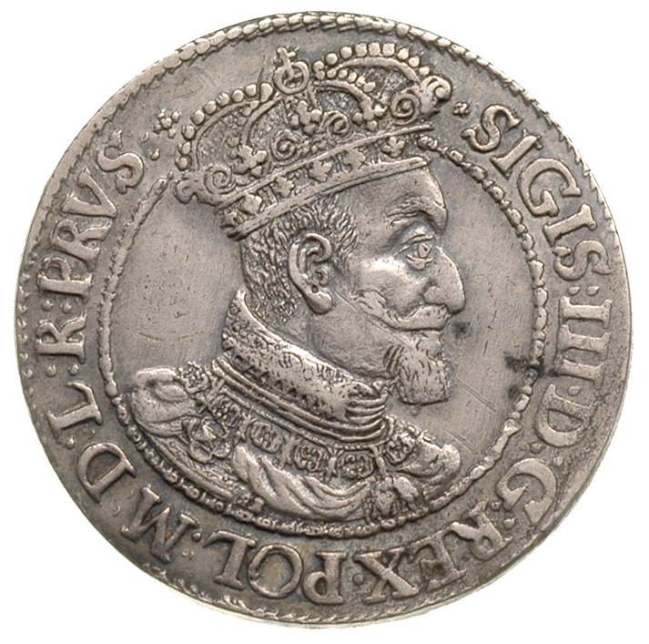 ort 1618, Gdańsk, dwukropek i rozetka kończą napis na a...