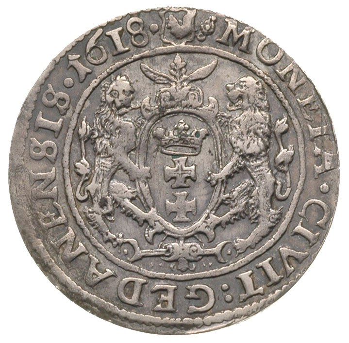 Zygmunt III Waza 1587-1632, ort 1618, Gdańsk, dwukropek i rozetka kończą napis na awersie, patyna