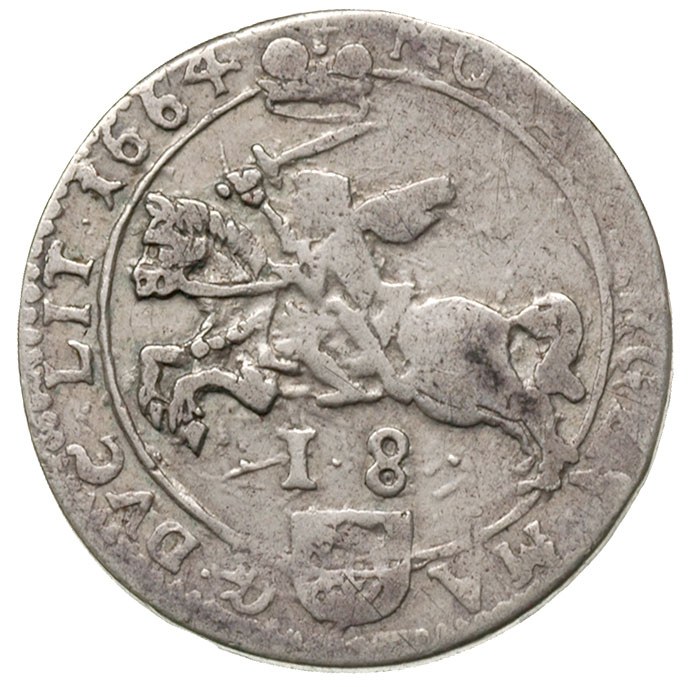 Jan II Kazimierz 1649-1668, ort 1664, Wilno, odmiana z obwódkami po obu stronach, Ivanauskas 8JK13-2, T. 3, rzadki