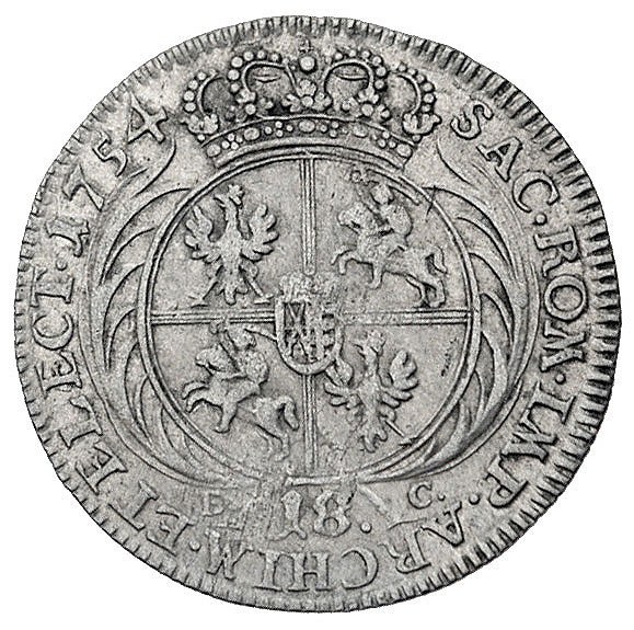 August III 1733-1763, ort 1754. Lipsk, Kam. 808, Merseb. 1779
