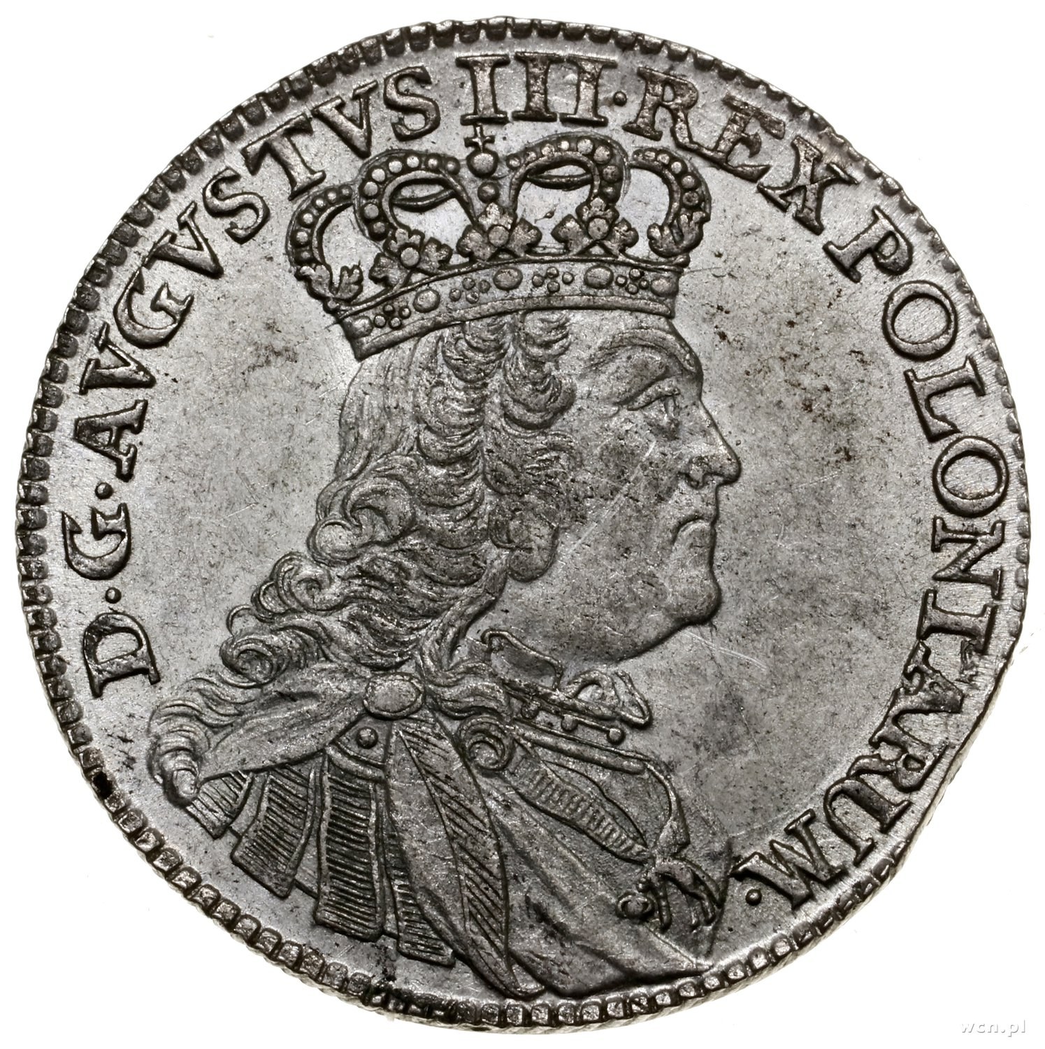 Ort, 1755 EC, Lipsk; małe popiersie króla, obie korony ...