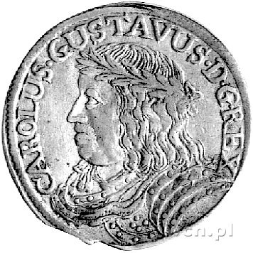 Jan II Kazimierz 1649-1668, ort bez daty, Toruń, okupacja szwedzka, popiersie króla Karola Gustawa, Ahlström 1, H-Cz. 8324 R3, rzadki, patyna.