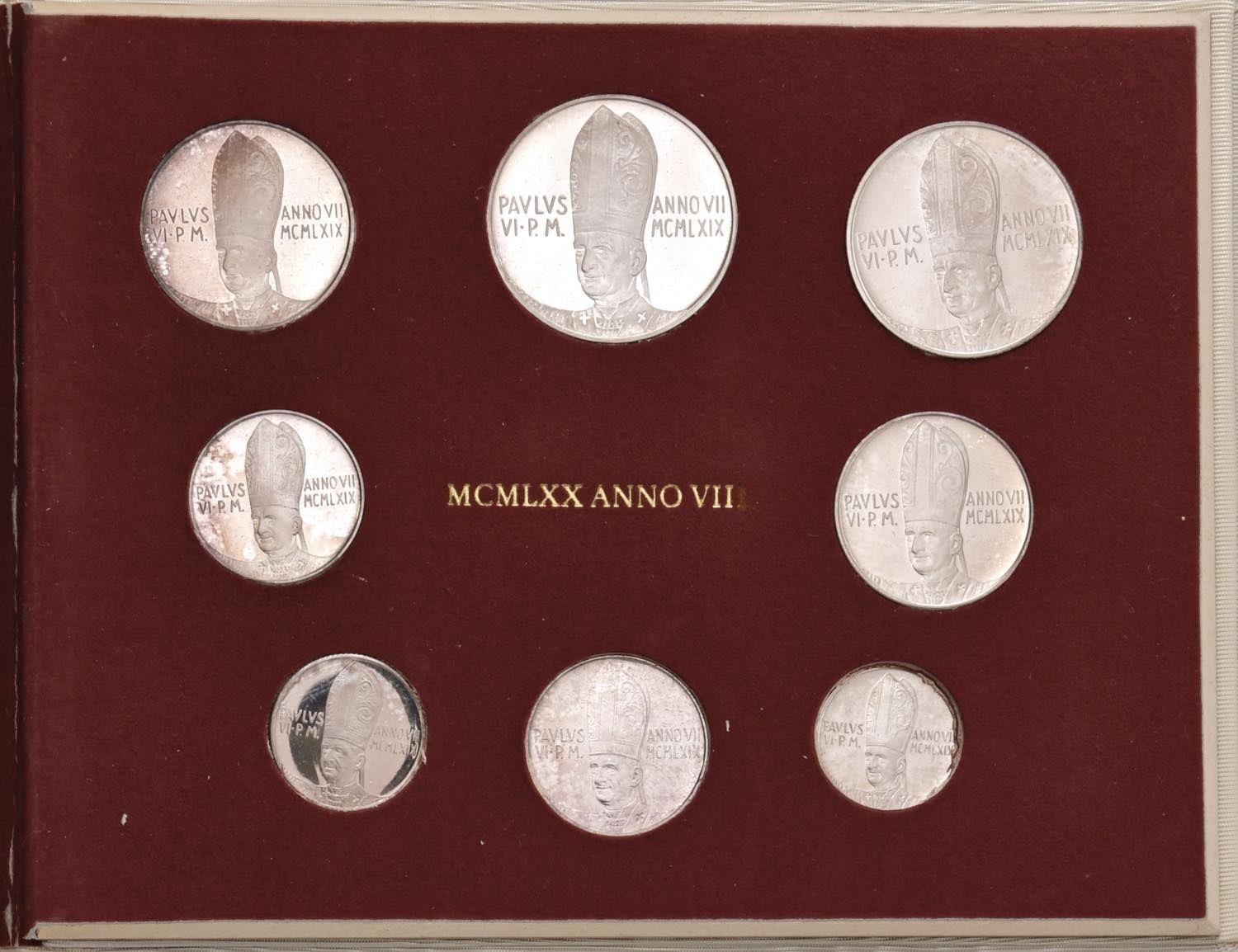 Paolo VI (1963-1978) Divisionale 1969 A. VII prova in argento - AG RRR Lotto di otto monete in confezione