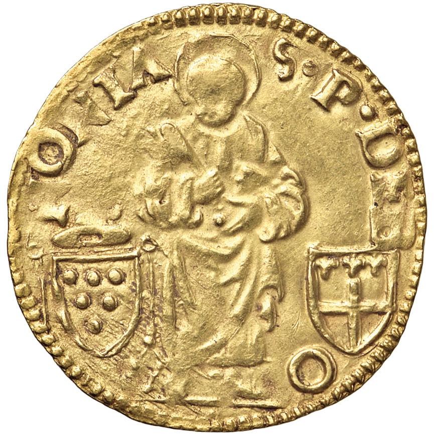 Adriano VI (1522-1523) Bologna - Ducato - Munt. 104 Var. AU (g 3,47) R Monetazione attribuita ad Adriano VI. Moneta di inusuale ed alta qualità, non circolata, che, nonostante presenti al R/ lievi debolezze di conio che caratterizzano la tipologia, si presenta in ottimo stato di conservazione. D/ dai rilievi perfettamente integri e ben impressi.