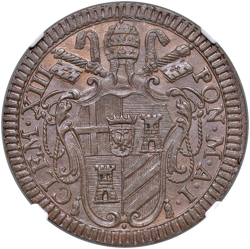 Clemente XIII (1758-1769) Baiocco 1758 An. I - Munt. 34 CU NC In slab NGC MS 63 BN n° 6141766-001.