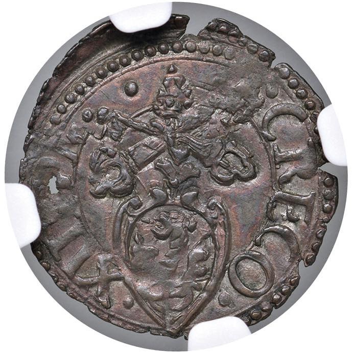 Gregorio XIII (1572-1585) Fano - Quattrino - Berman 1273 CU In slab NGC MS 62 BN cod. 2824086-003. In slab NGC, MS 62 BN cod. 2824086-003. Top pop, miglior esemplare certificato NGC
