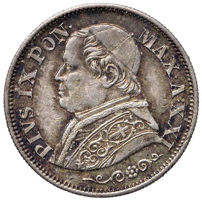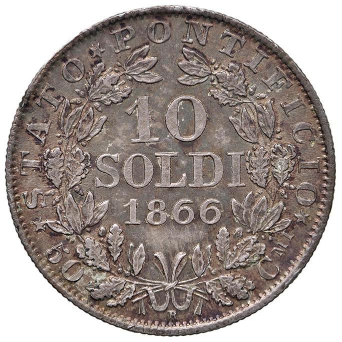 Papal coins - Pio IX (1846-1870) 10 Soldi 1866 A. XXI - Munt. 54 AG (...