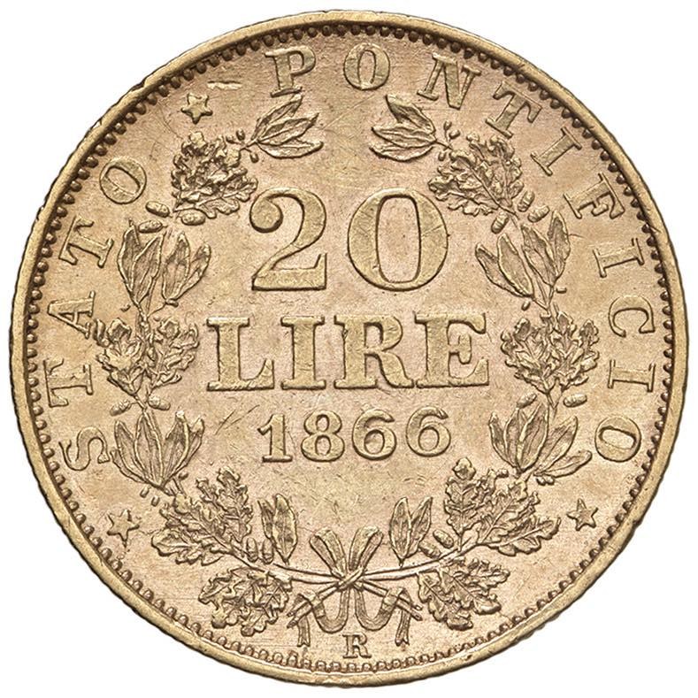 Pio IX (1846-1870) 20 Lire 1866 A. XXI - Nomisma 844 AU (g 6,44) Minimi colpetti al bordo