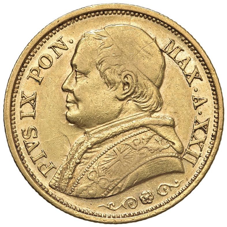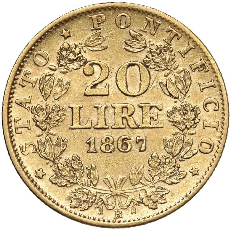 Papal coins - Pio IX (1846-1870) 20 Lire 1867 A. XXII - Nomisma 846 A...