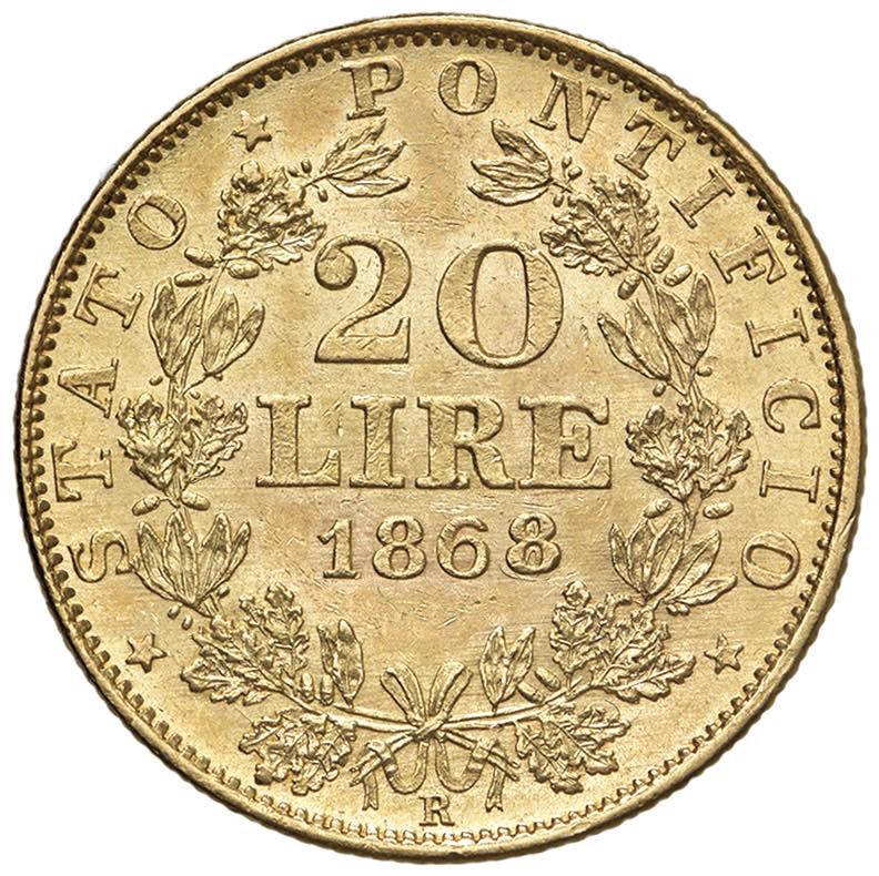 Papal coins - Pio IX (1846-1870) 20 Lire 1868 A. XXIII - Nomisma 848 ...
