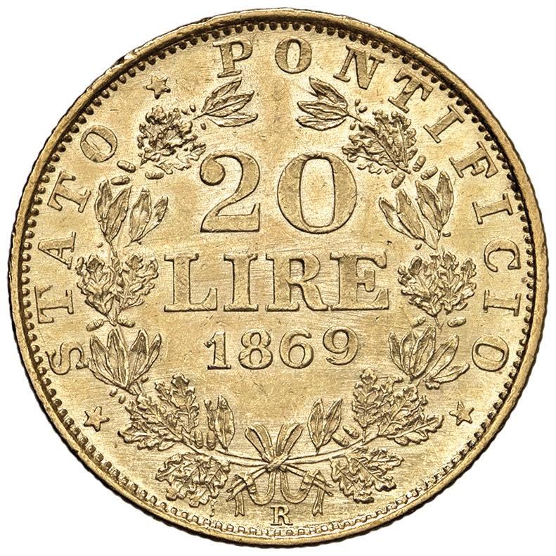 Papal coins - Pio IX (1846-1870) 20 Lire 1869 A. XXIV - Nomisma 850 A...