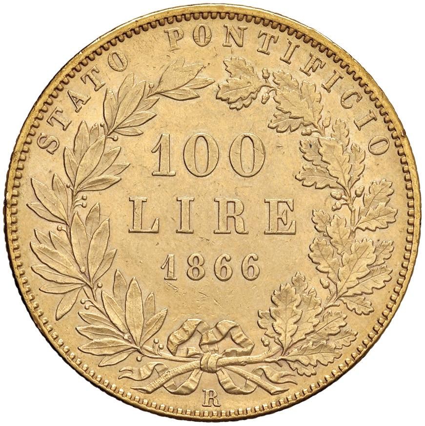 Papal coins - Pio IX (1846-1878) 100 Lire 1866 A. XXI - Nomisma 836 A...